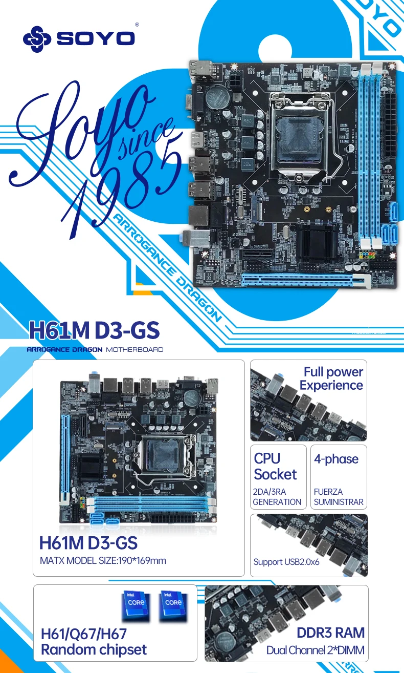 Comprar SOYO-placa base H61 LGA 1155, Compatible con Intel Core CPU de 2ª y 3ª generación, Compatible con M.2 NVME SDD, componentes de ordenador