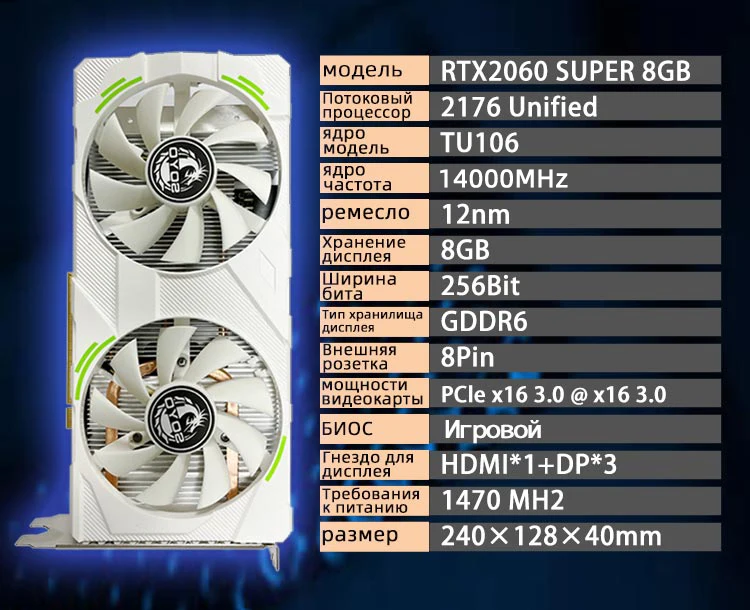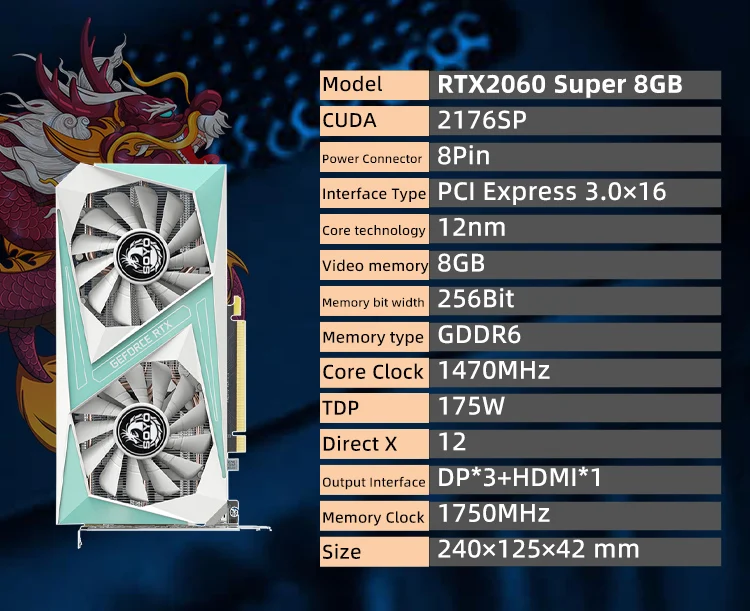 Comprar SOYO-tarjeta gráfica RTX 2060 Super, 8GB, 256bit, GDDR6, compatible con PCIE, PCI-E3.0, 16X, 3DP, HD, ranura ETH, minin