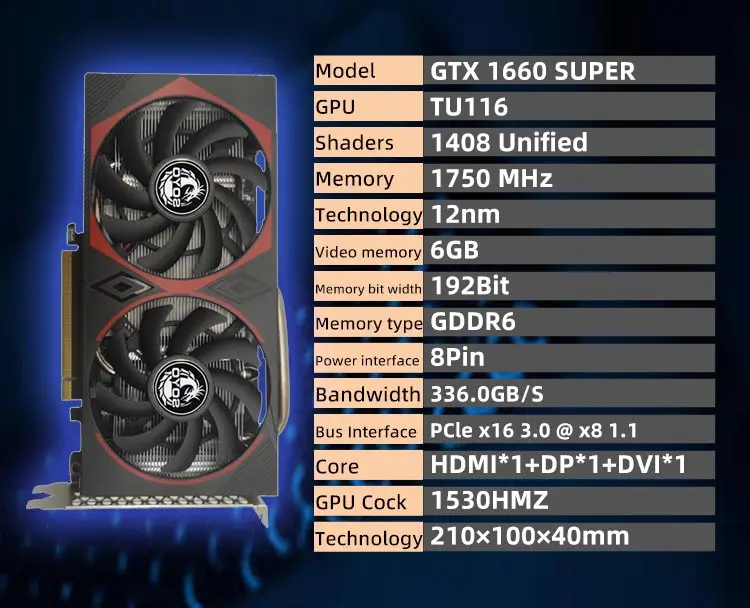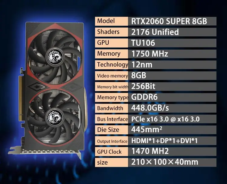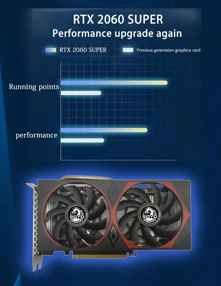 Comprar SOYO-tarjeta gráfica RTX 2060 Super, 8GB, 256Bit, GDDR6, para videojuegos, PCIE, PCI-E3.0, 16X, HDMI + DP + DVI, ranuras HD