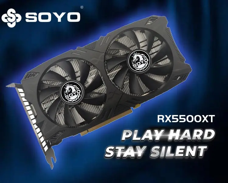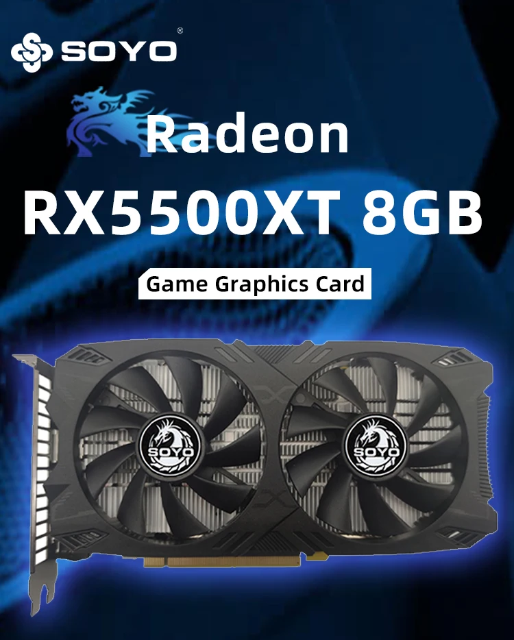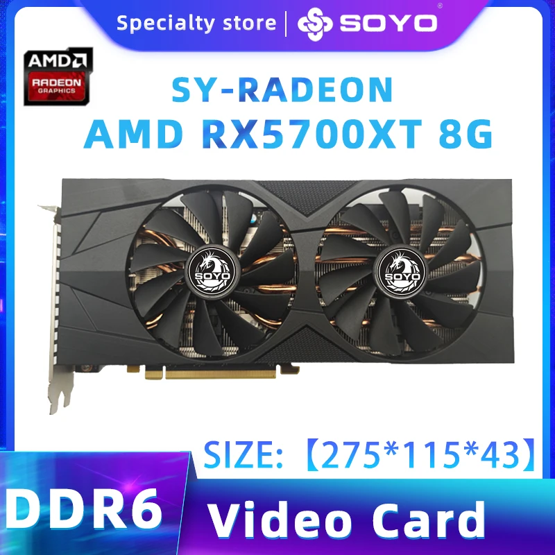 Comprar SOYO-tarjeta gráfica RX 5700XT 5500XT de 8GB, GPU GDDR6 de 256 bits, 8 pines + 8 pines, 7nm, nueva tarjeta de vídeo compatible con CPU de escritorio
