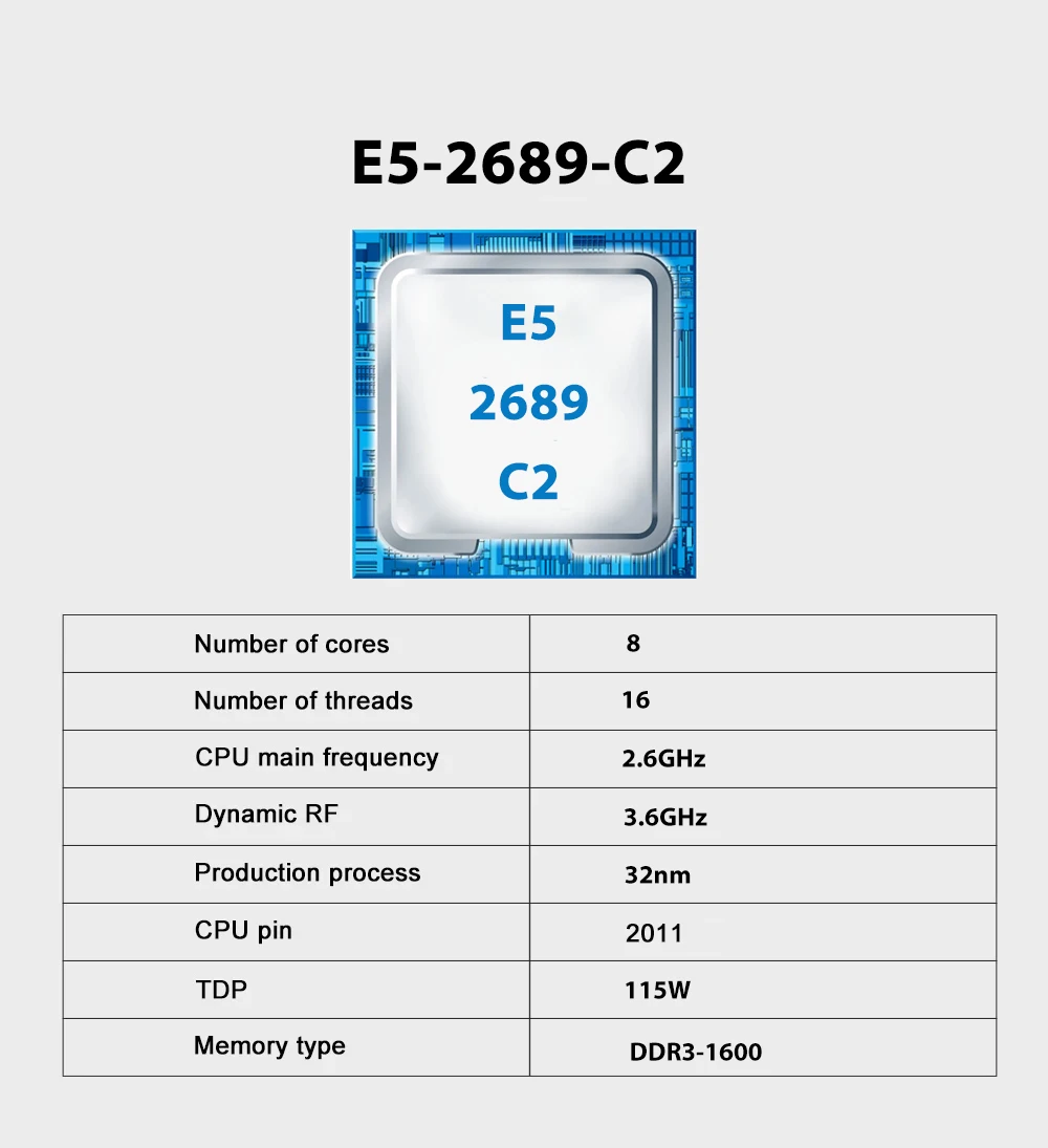 Placa base+CPU+RAM: 1*SY-X79 D3+1*E5 2689 CPU+1*DDR3 16G ECCParámetros de la CPU:
