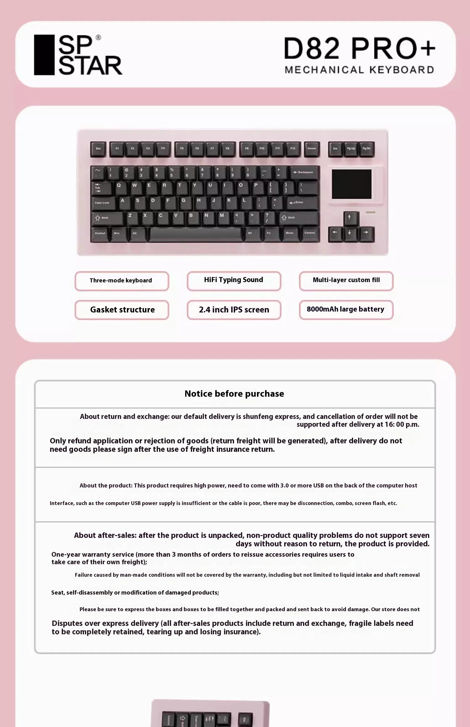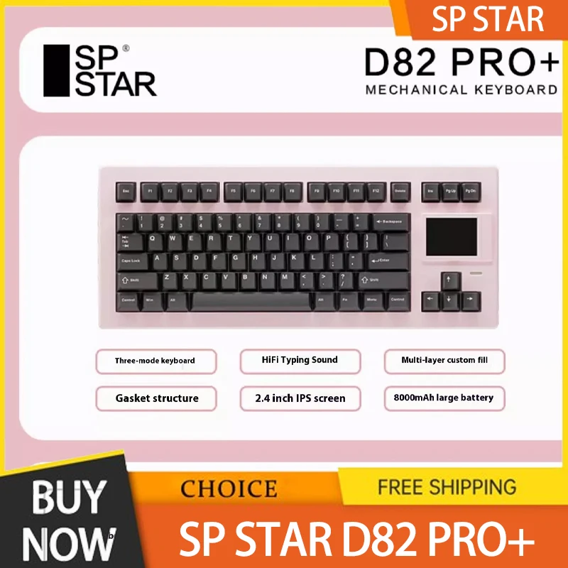 Comprar Sp Star D82 Pro Teclado mecánico 3 modos inalámbrico Bluetooth pantalla Rgb personalizado intercambio en caliente Gamer Pc teclados para juegos regalo