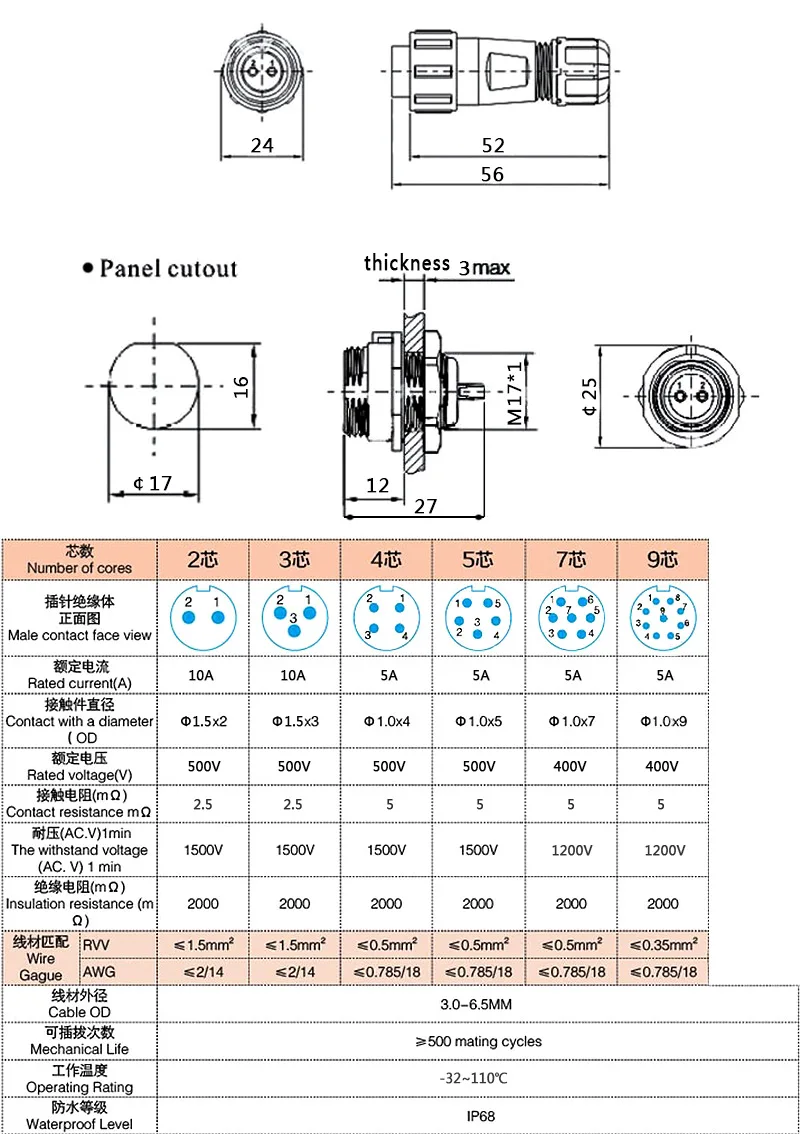 Parámetro de especificaciónMaterial de la carcasa: termoplástico PA66Aislante: termoplástico PPS resistente a altas temperaturas 260Material de contacto: cobre (chapado en oro, plateado)Anillo de sellado: gel de síliceGénero de la carcasa: asiento femenino masculinoConexión: conexión de roscaTemperatura de funcionamiento: -35 grados C ~ 110 grados CHumedad relativa: 90%~95% (40 + 2 grados C)Sellado: en línea con IP68Diámetro de alambre aplicable: diámetro 5,0 ~ 10 mmVida mecánica: más de 500 veces