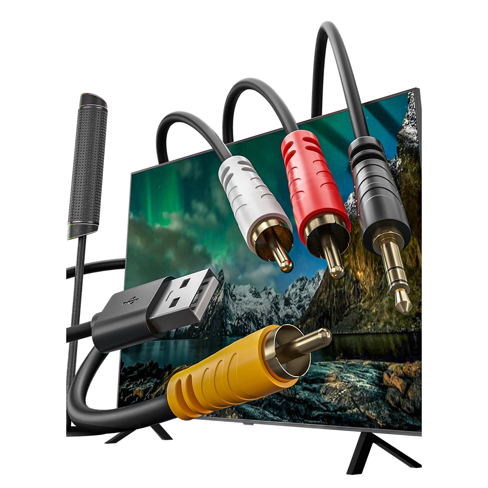 2. Mejore su experiencia de audio de TV: Conecte su televisor a altavoces o amplificadores externos usando el cable de audio estéreo 2rca + 3,5mm para crear una experiencia de cine en casa. Disfrute de películas y programas de televisión con un sonido más envolvente, lo que le brinda una experiencia de visualización emocionante.