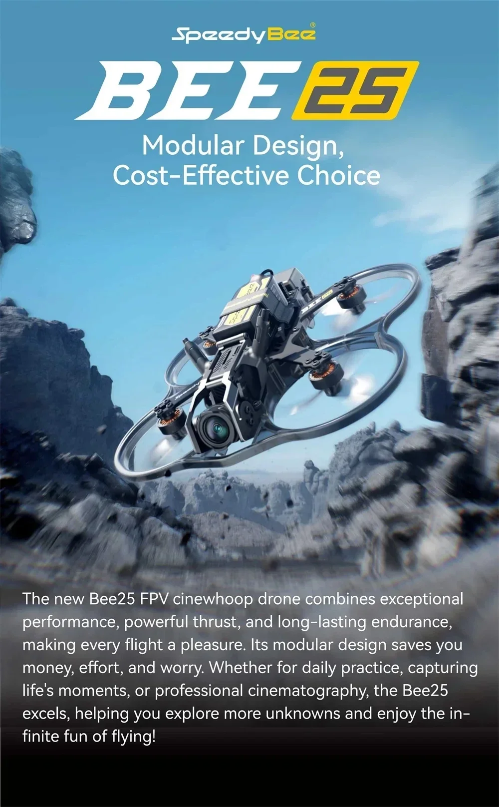 El nuevo dron cinewhoop Bee25 FPV combina un rendimiento excepcional, un empuje potente y una resistencia duradera, lo que hace que cada vuelo sea un placer.Su diseño modular le ahorra dinero, esfuerzo y preocupaciones.Ya sea para la práctica diaria, capturar momentos de la vida o cine profesional, Bee25 destaca, ¡lo ayudándote a explorar más desconocidos y disfrutar de la diversión infinita de volar!