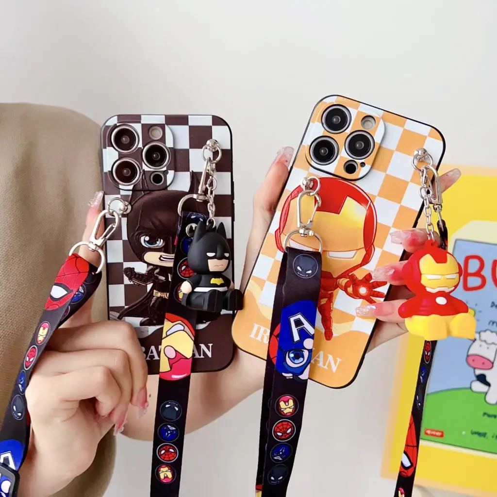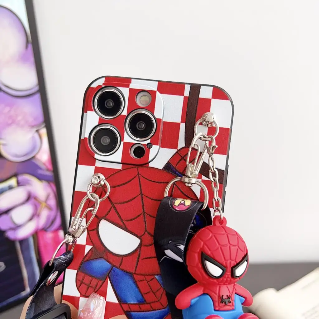 Spider Man para Samsung Galaxy A13 A14 A03 A04 A23 A32 A23 A33 A52 A72 A34 A24 A54 A73 S23FE funda con cuerda de soporte