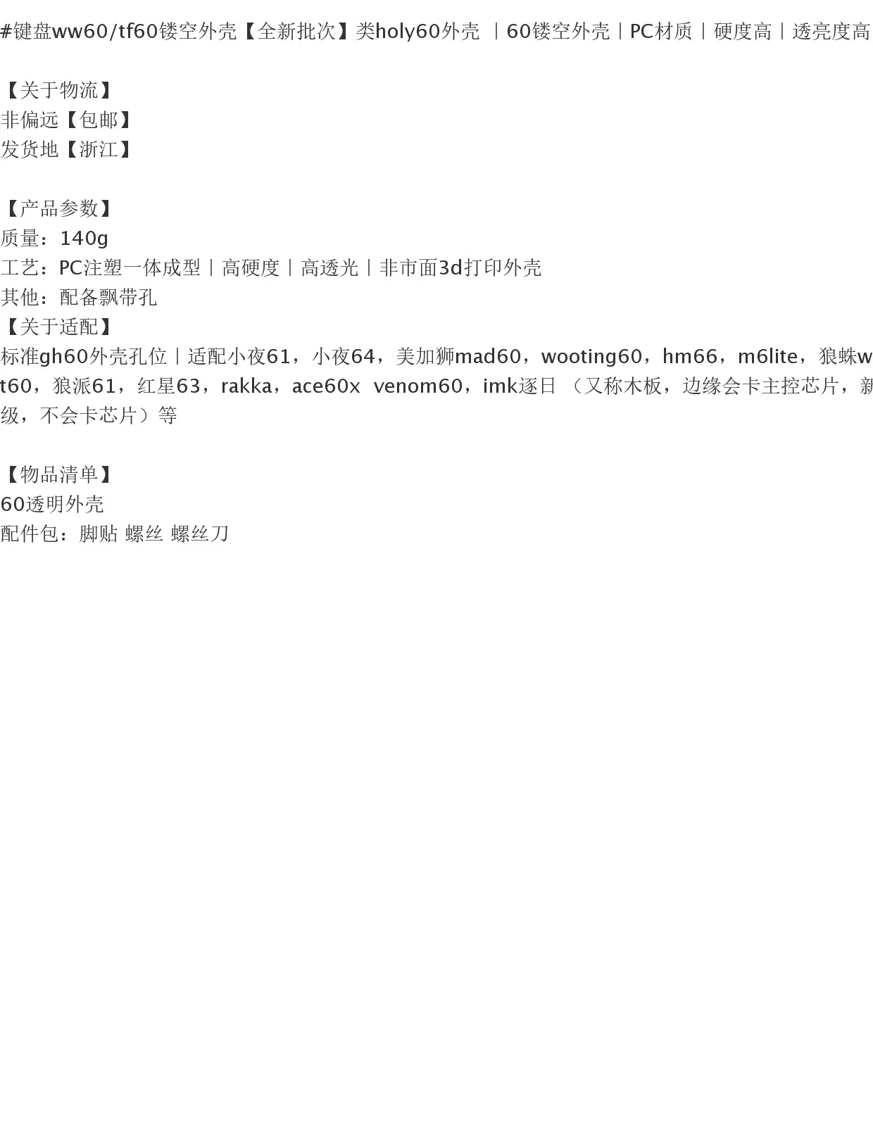 Spot Ww60/tf60 Color transparente hueco 60 teclas carcasa de teclado mecánico se puede personalizar Material de PC tecla completa intercambiable en caliente
