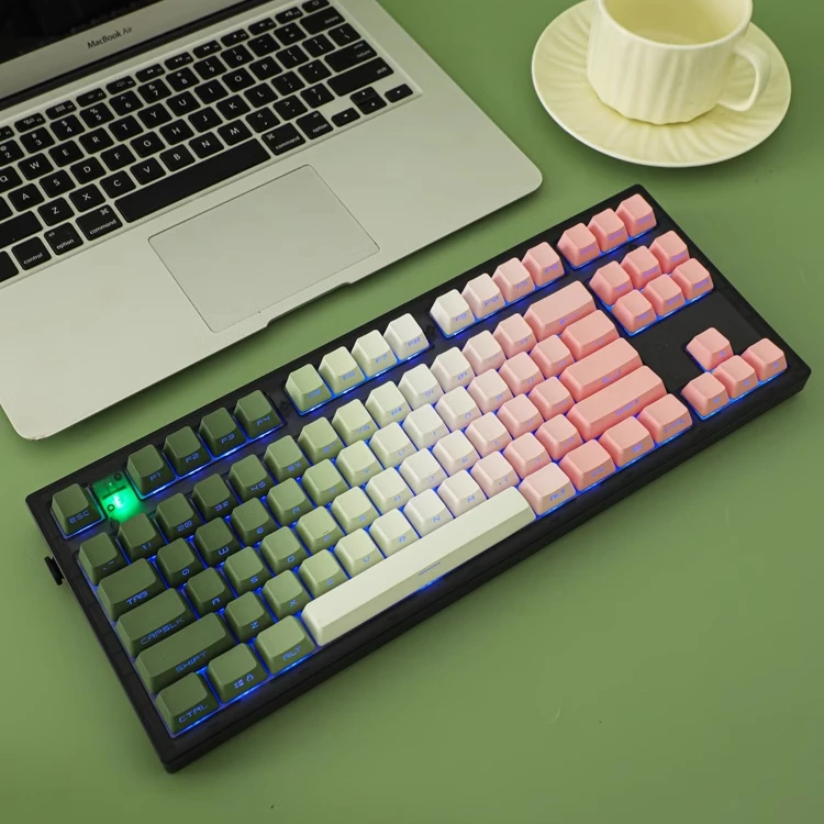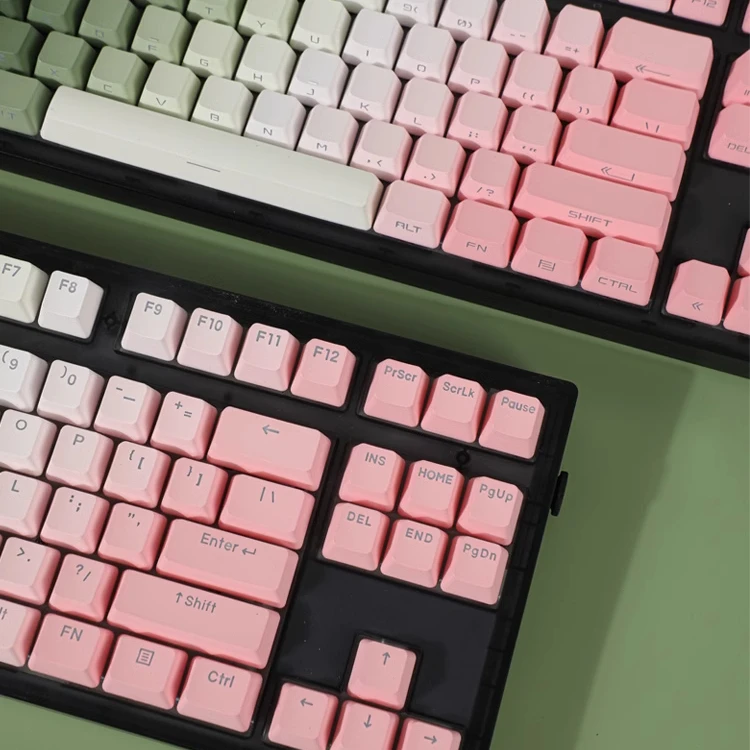 Comprar Spring Breeze-teclas con gradiente de color verde y rosa, tapa de tecla retroiluminada translúcida con carácter superior lateral, perfil OEM PBT para teclado MX