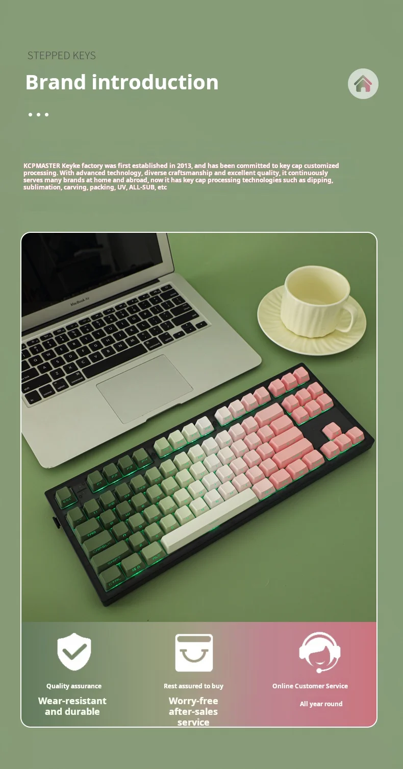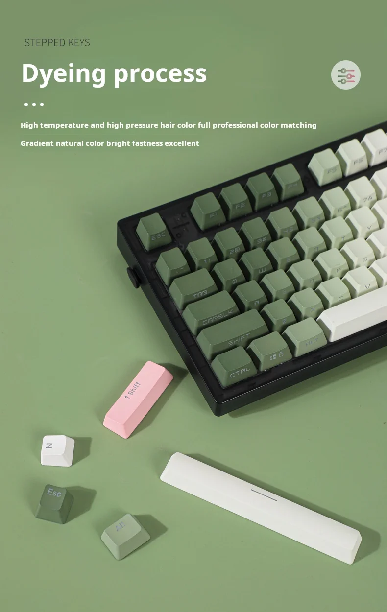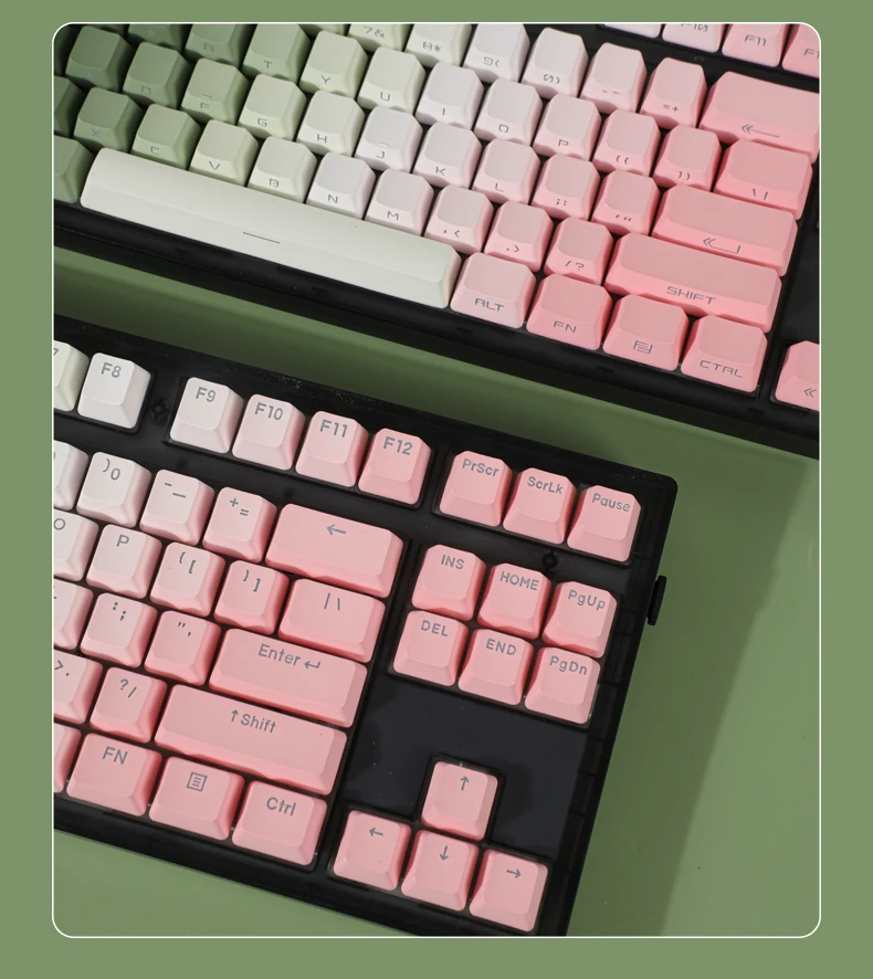 134 keys Side Print version includes 1.75U 2U shift,1.5U alt ctrl, 6.25U 7U spacebar,it is compatible with 61、64、68、71、75、84、87、96、980、104、108, etc. layout mechanical keyboard with MX switches
