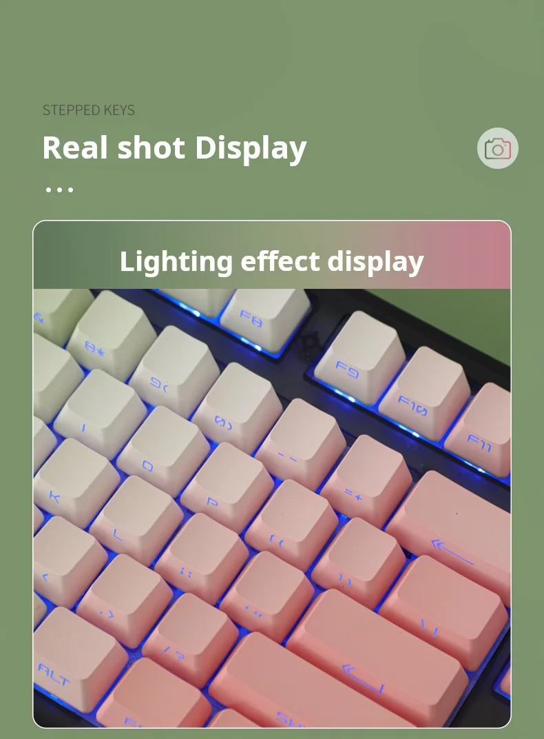 123 keys top backlit version includes 1.75U shift,6.25U spacebar, it is compatible with 61、64、68、84、87、96、980、104、108, etc. layout mechanical keyboard with MX switches