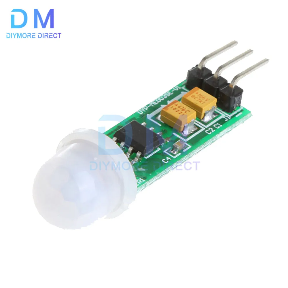 SR505 ajuste IR piroeléctrico infrarrojo PIR Sensor de movimiento módulo DetectorProductos.Parámetros técnicos:Rango de voltaje de funcionamiento: DC4.5-20V Corriente estática: 60UA Nivel de salida: Alto 3,3 V/bajo 0V Disparador: disparador repetible (por defecto) Tiempo de retardo: 8S + -30% por defecto (se puede personalizar el rango de unas pocas diez minutos). PCB Dimensiones: 10*23mm Ángulo de inducción: ángulo cónico de 100 grados Distancia de producción: 3 metros Temperatura de trabajo: -20 - + 80 grados Dimensiones de la lente del Sensor: diámetro: 10mm (por defecto)Características: Máquina automática Inducción: para entrar en el rango de detección de la salida es alta, las personas Deje el rango del sensor automáticamente de retardo alto, salida baja. Tamaño Ultra pequeño. Disparador repetible: la salida del sensor alta, el período de retardo, si hay actividad humana en su rango de detección, el La salida permanecerá alta hasta que la gente salga después del alto retraso variable. Bajo (el módulo de sensor extendido automáticamente detecta el cuerpo humano después de Cada actividad es un período de retraso y la última vez que un evento es el Punto de inicio del tiempo de retardo). Amplio rango de voltaje de funcionamiento: el voltaje de funcionamiento predeterminado DC4.5V-20V. Micropotencia: corriente quiescente 50 microamperios, especialmente para productos de control automático con batería. Salida de señal alta: fácil acoplamiento y todo tipo de circuitos.