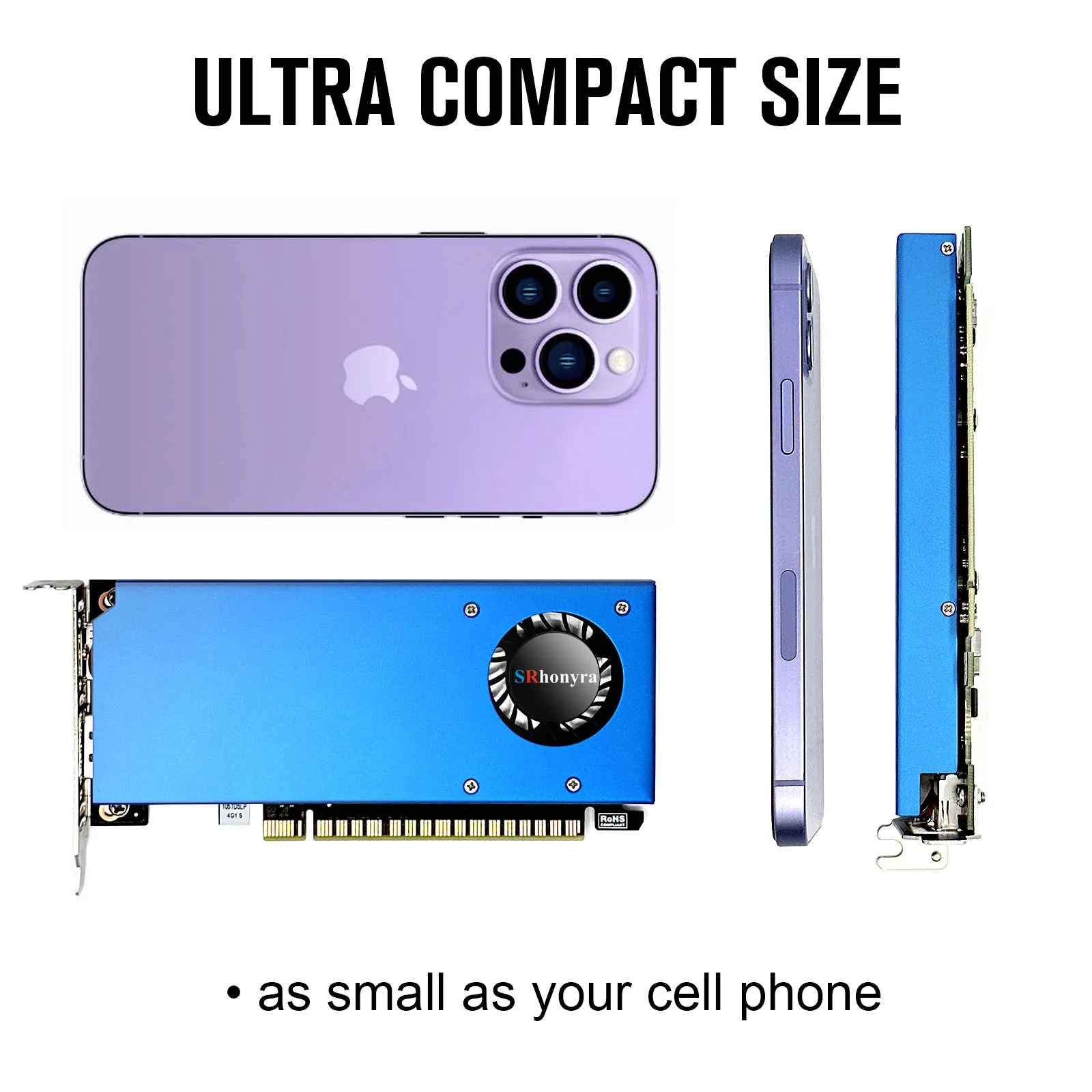 3.Ahorro de espacio: diseño de ranura única y semaltura, tamaño compacto de cena 5,7 x 2,7 x 0,8, puede caber fácilmente en carcasas más pequeñas y ocupan menos espacio que las tarjetas gráficas de tamaño estándar, lo que la hace ideal para construir sistemas de PC compactos.
