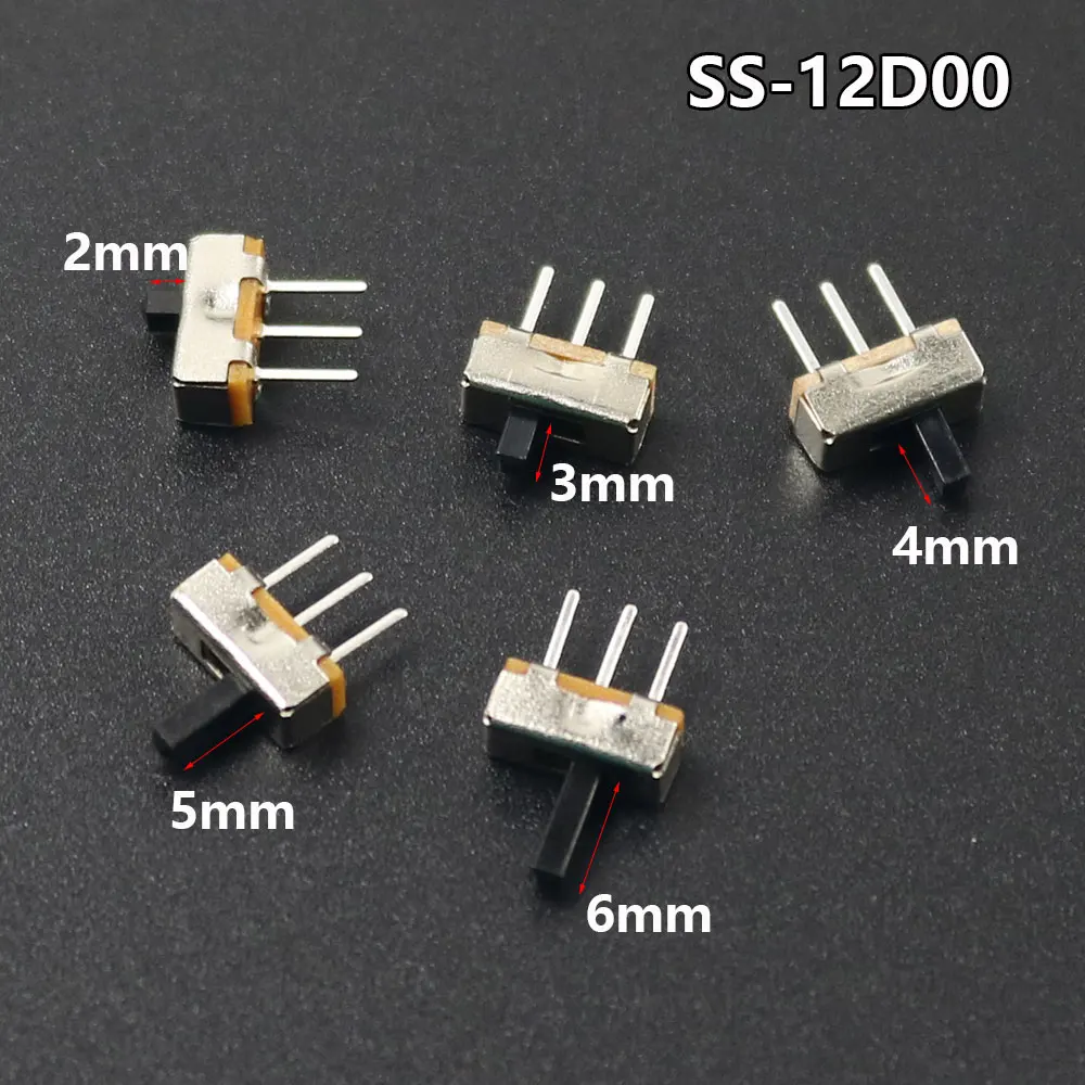 Comprar SS12D00-Mini interruptor deslizante, 3 pines, 1P2T, 2 posiciones, alta calidad, puño, 3 mm, 4 mm, 5 mm, 6 mm, microinterruptor deslizante, 10/20/50 piezas