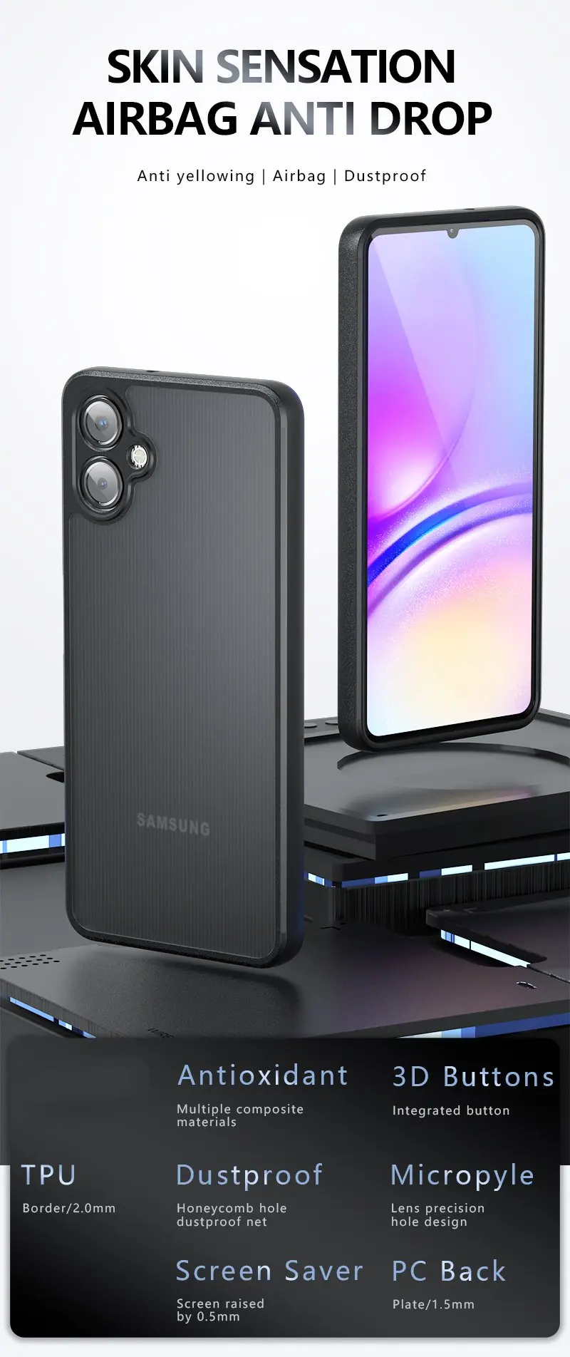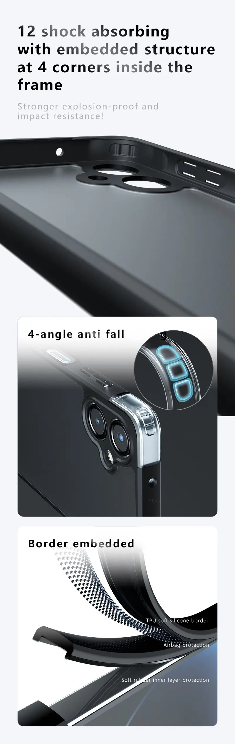 [Función]: Protección trasera A prueba de golpes + Resistente a rayones + Antideslizante