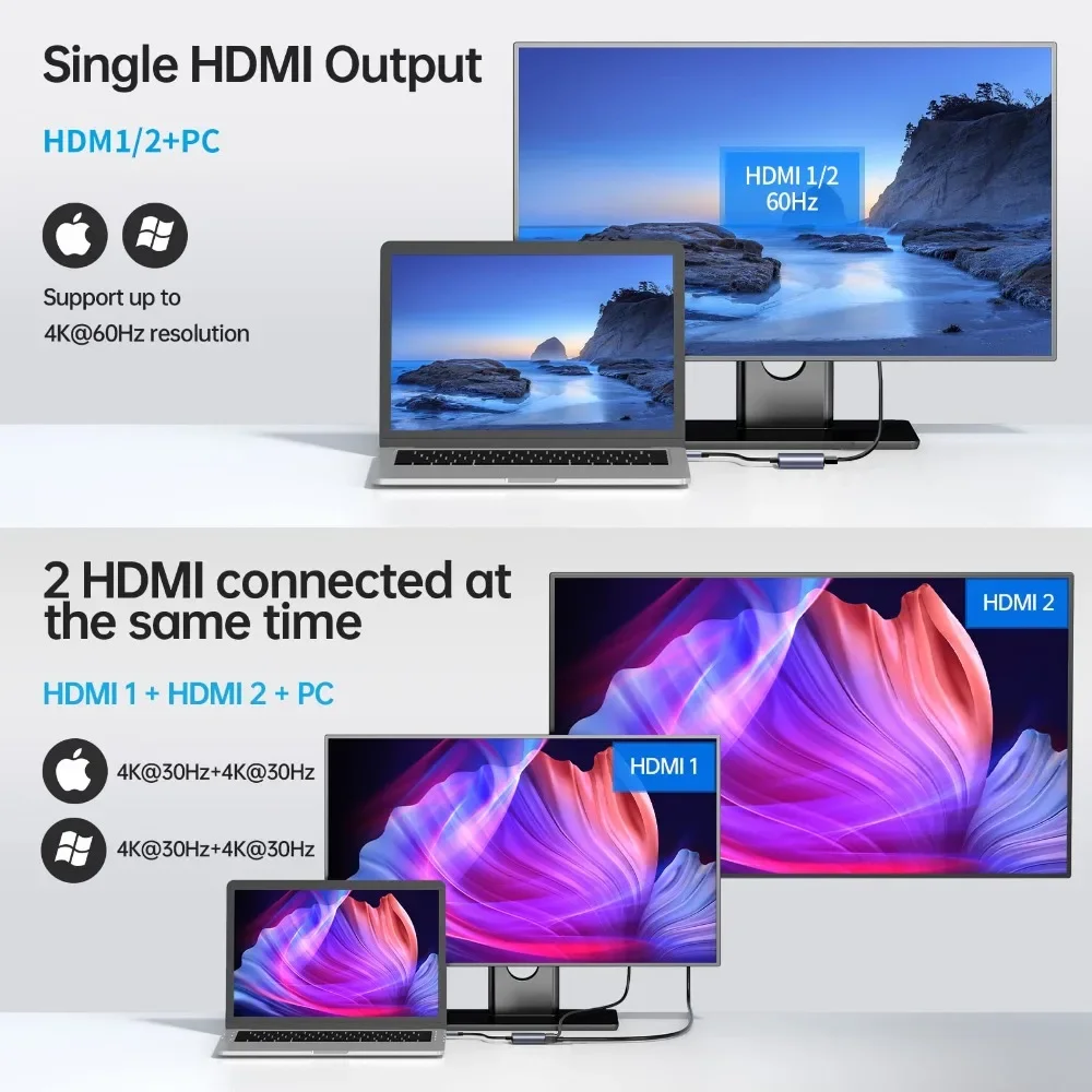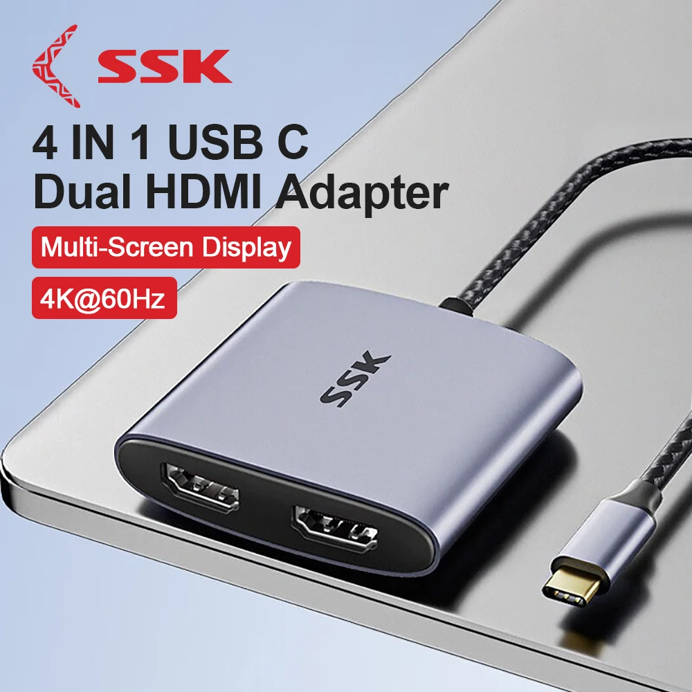 SSK-Adaptador USB C a HDMI Dual 4K/60Hz, divisor 4 en 1 para ordenador portátil, HDMI 100W PD, estación de acoplamiento Usb C para MacBook Thunderbolt HUB