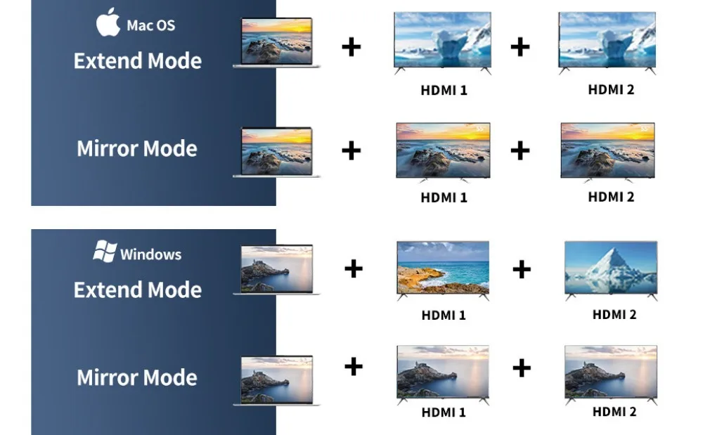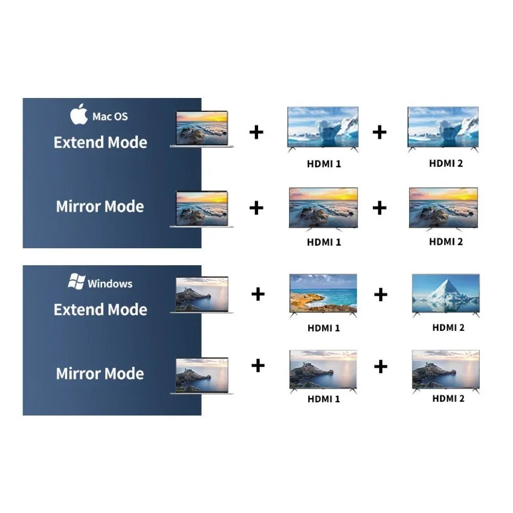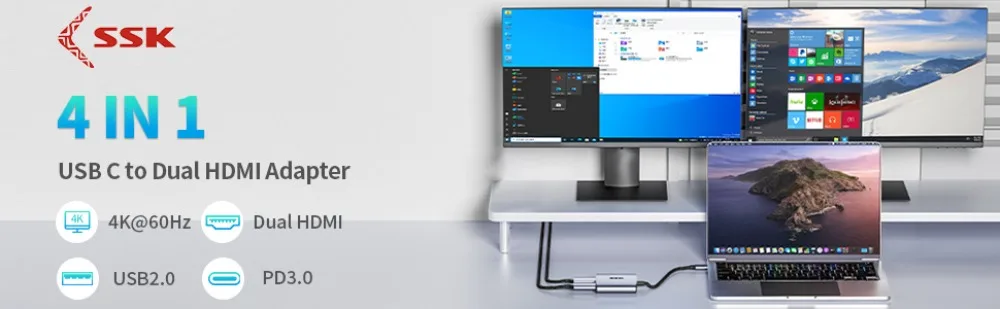 Comprar SSK-Adaptador USB C a HDMI Dual 4K/60Hz, divisor 4 en 1 para ordenador portátil, HDMI 100W PD, estación de acoplamiento Usb C para MacBook Thunderbolt HUB