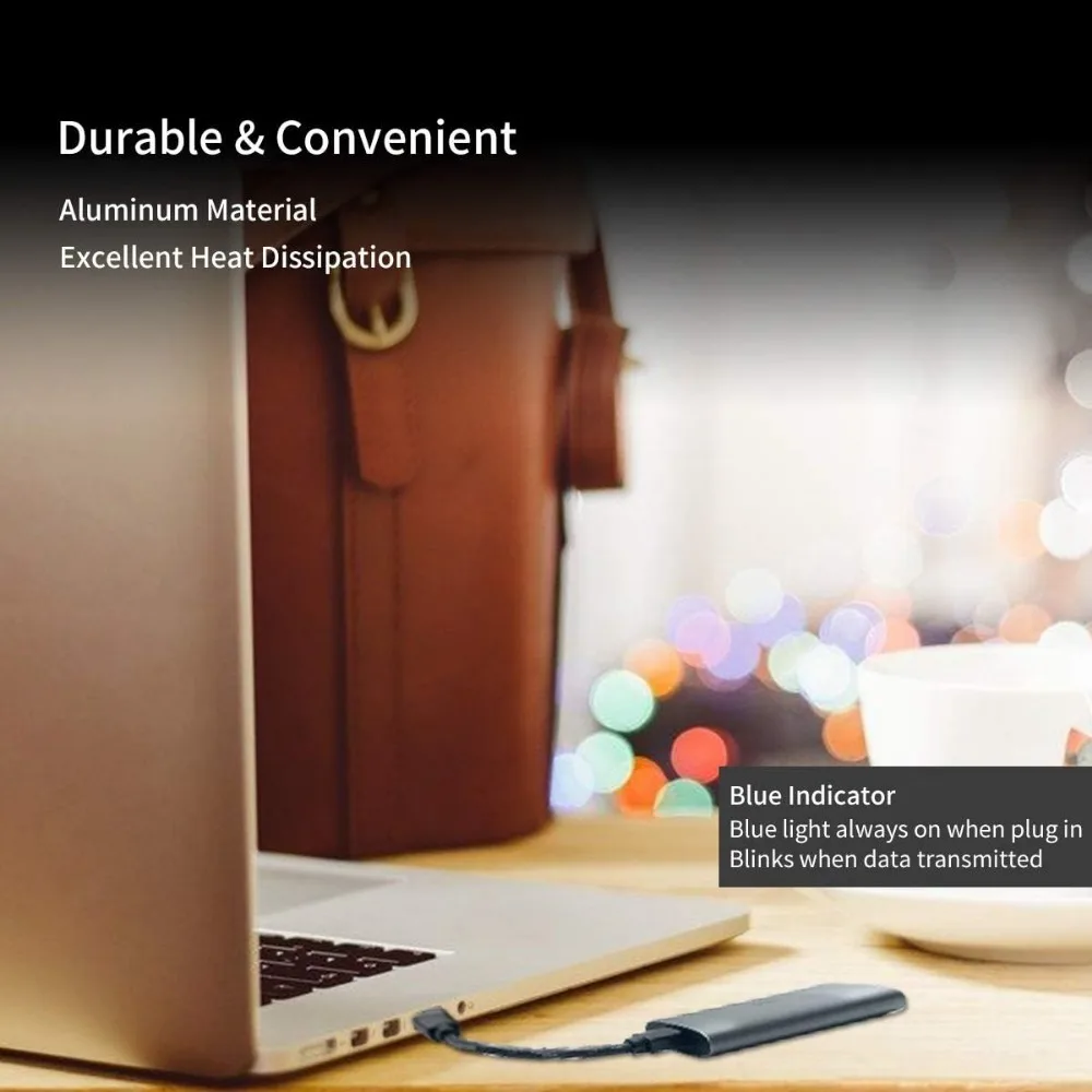 【Carcasa de aleación de aluminio】-Adopta carcasa de aleación de aluminio, diseño delgado, duradero y excelente disipación del calor, portátil y fácil de transportar; Nota: SSD SATA no está incluido.