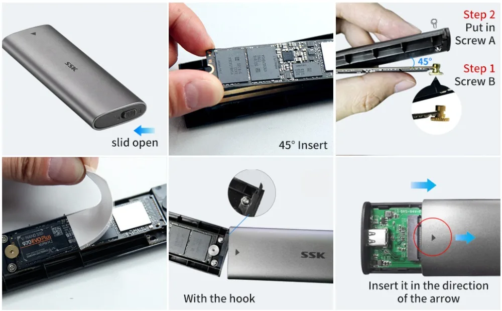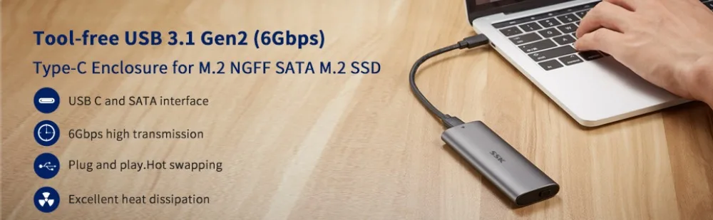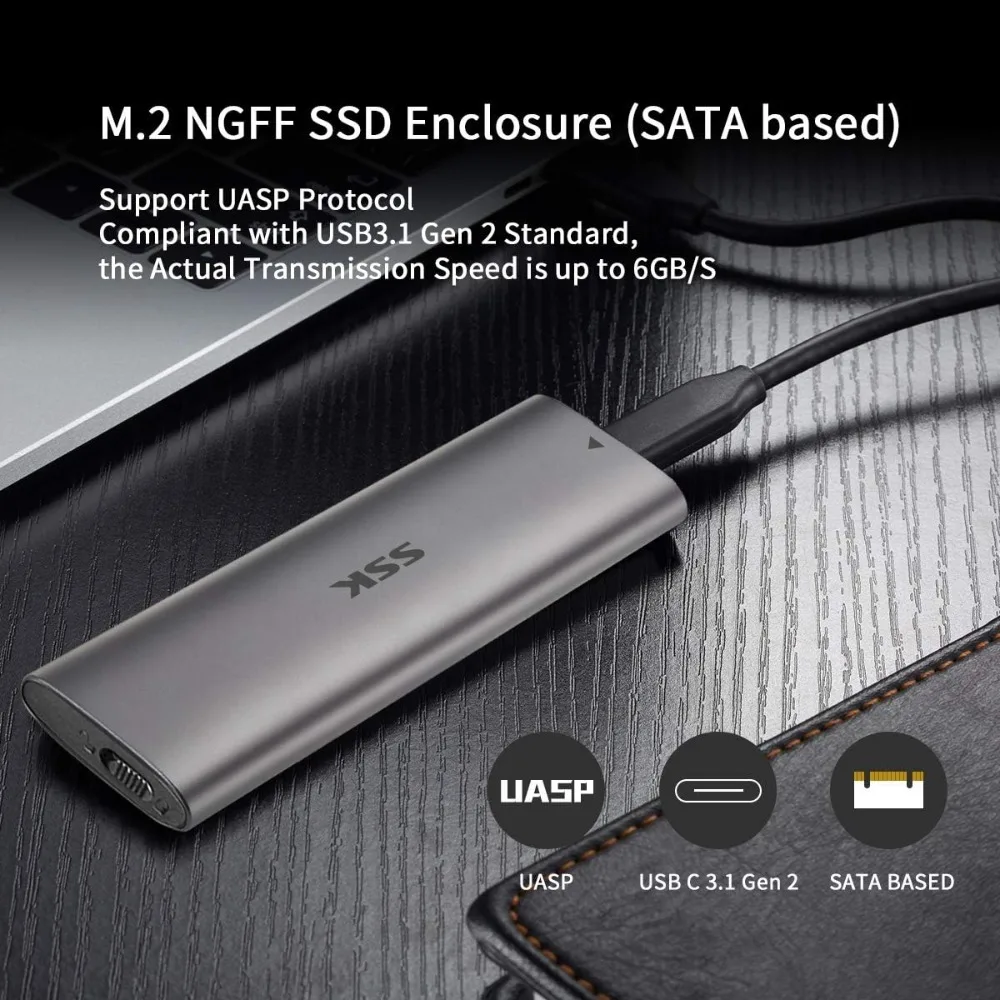 Comprar SSK-lector de carcasa de SSD M.2 SATA de aluminio, USB 3,2 Gen 2 (6gbps), adaptador SSD externo tipo C para M2 SATA NGFF 2242/2260/2280 SSD
