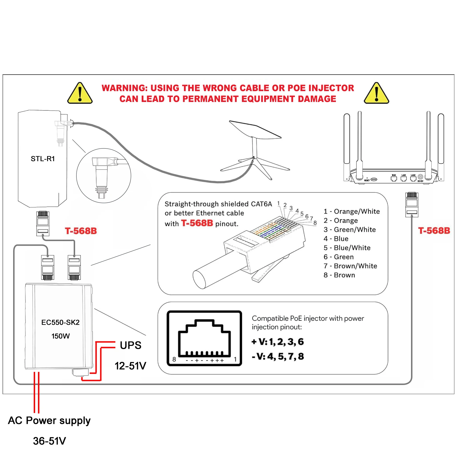 Para Starlink Dishy V2 a RJ45, Cable Ethernet y Kit convertidor con inyector POE, Pin T568B 10/100/1000Mb/s