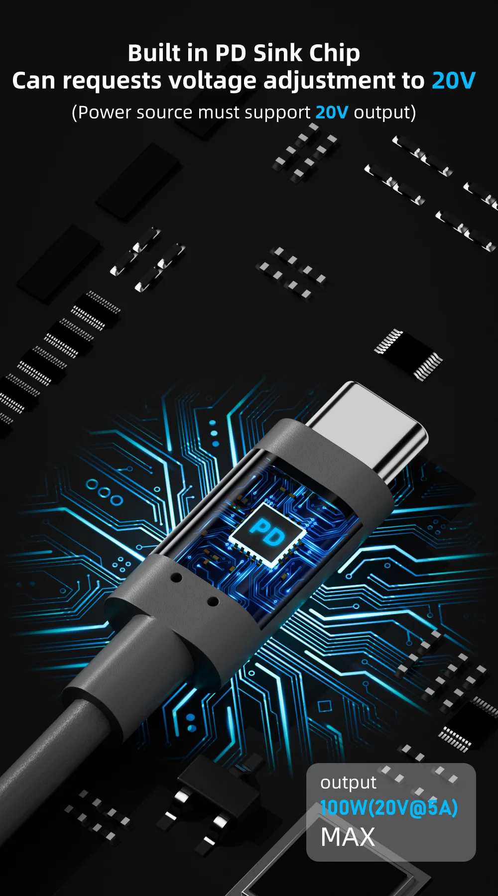 【Salida de alta potencia】-Este cable admite una potencia de salida máxima de 100 W (20 V/5 A).Para utilizar todo su potencial, se recomienda un adaptador de corriente PD o una fuente capaz de proporcionar una salida de al menos 65 W (20 V/3,25 A).Verifique siempre la compatibilidad con las especificaciones de su fuente de alimentación.