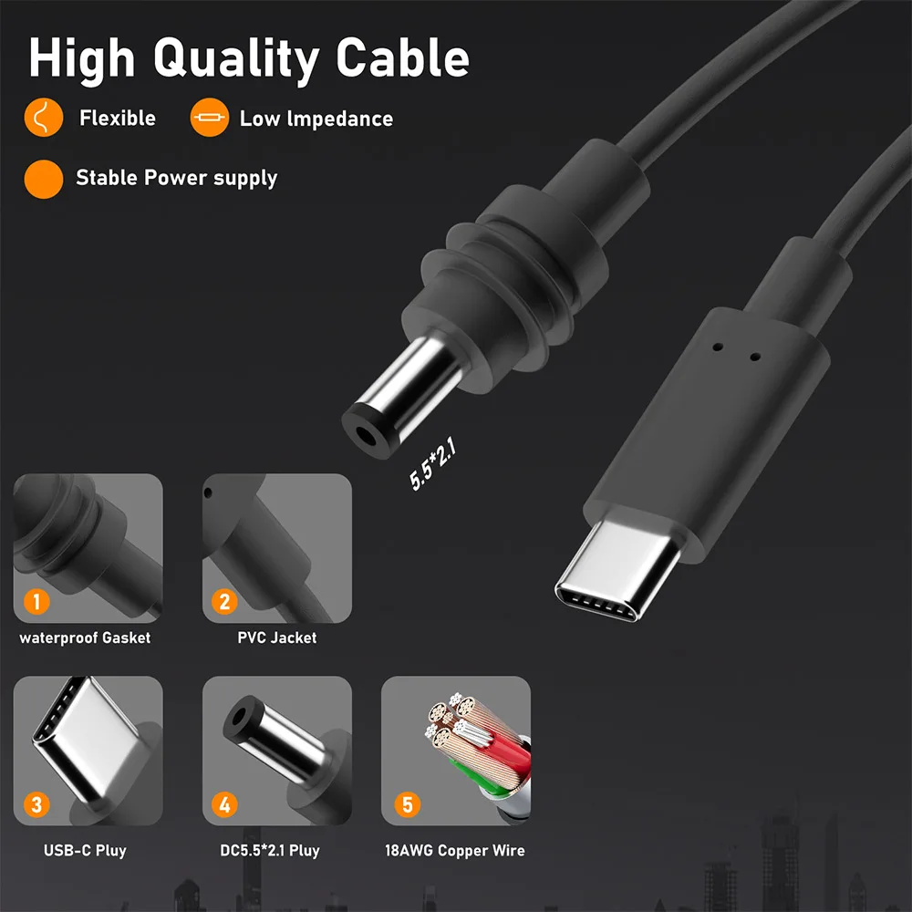 【Construcción premium para mayor confiabilidad】-Este cable USB-C a DC está diseñado para un rendimiento duradero. Fabricado con cables de 18 AWG de alta calidad y un conector de metal más grueso, garantiza una durabilidad superior, una transmisión de energía eficiente y una conexión estable para su configuración Starlink Mini.