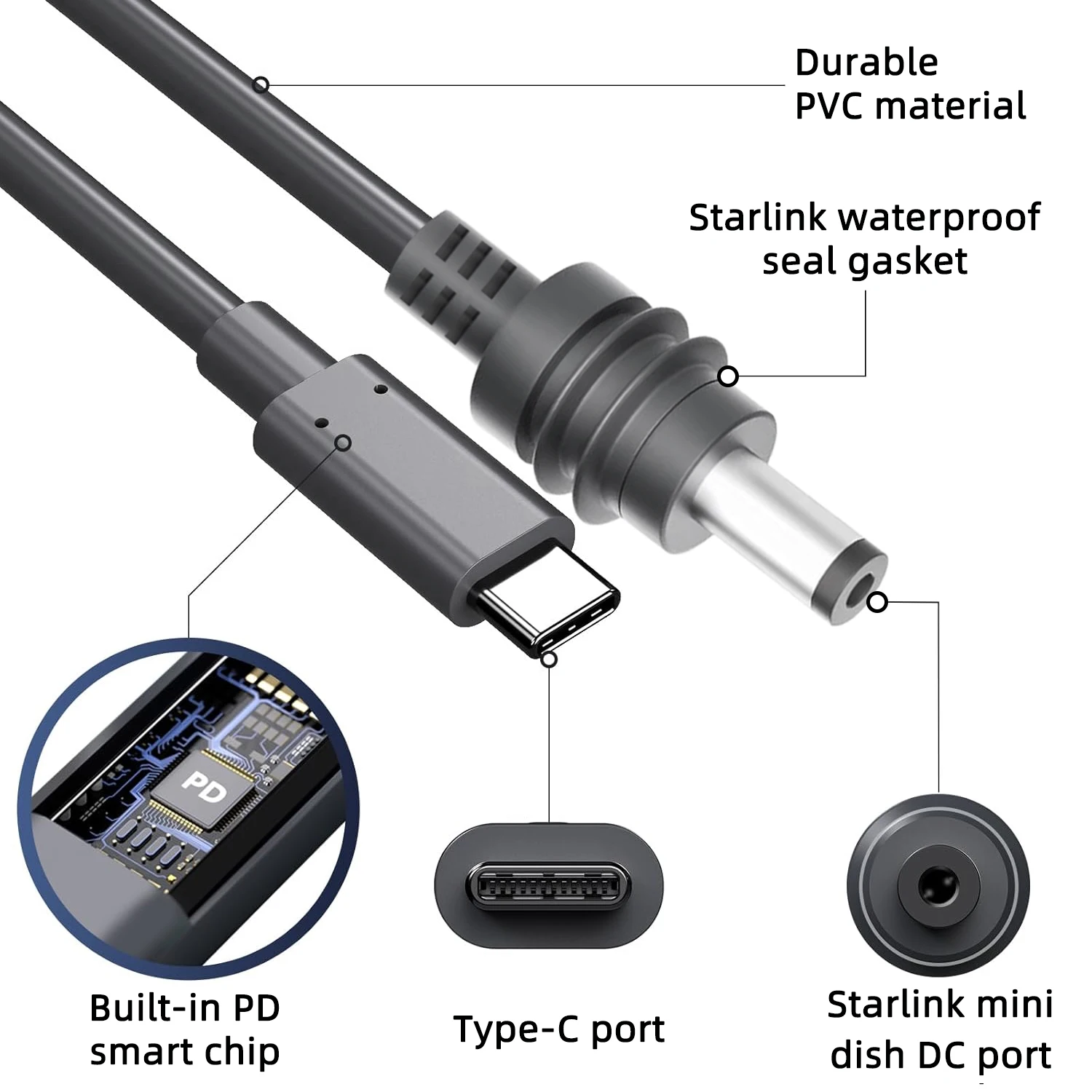 PD-Power Ready:Diseñado para Starlink Mini, este mini cable starlink garantiza una potencia estable con una salida recomendada más de 100 W para un rendimiento máximo.