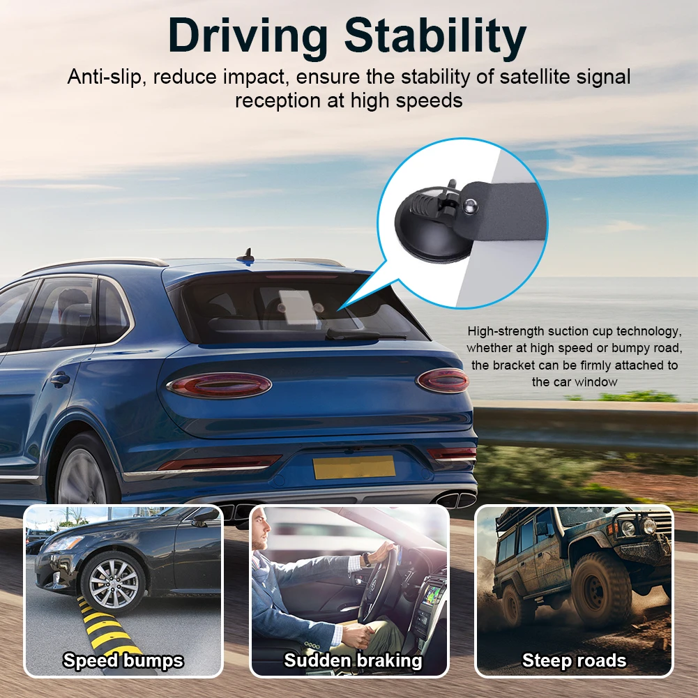 2. Fuerte succión:Con tecnología de succión de alta resistencia, el soporte para automóvil se adhiere firmemente al parabrisas incluso en carreteras con baches o a altas velocidades, lo que garantiza una recepción constante de la señal satelital y una conectividad de red perfecta en cualquier momento.