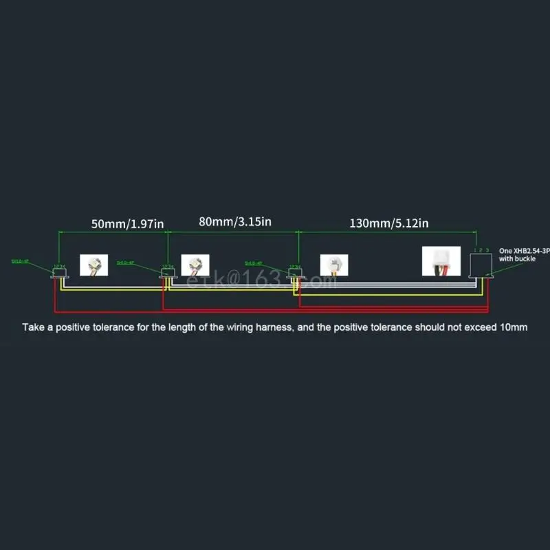 Las cuentas y los cables de la lámpara LED han sido soldados, lo que es más conveniente de usar. La longitud del arnés debe estar dentro de la tolerancia positiva, que no debe ser de 10mm.