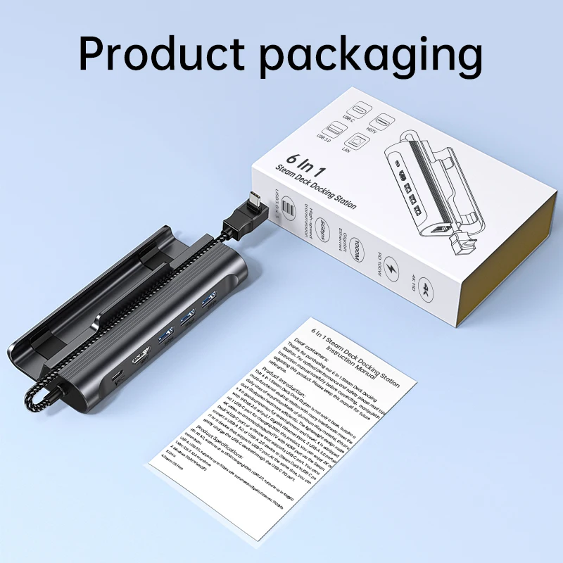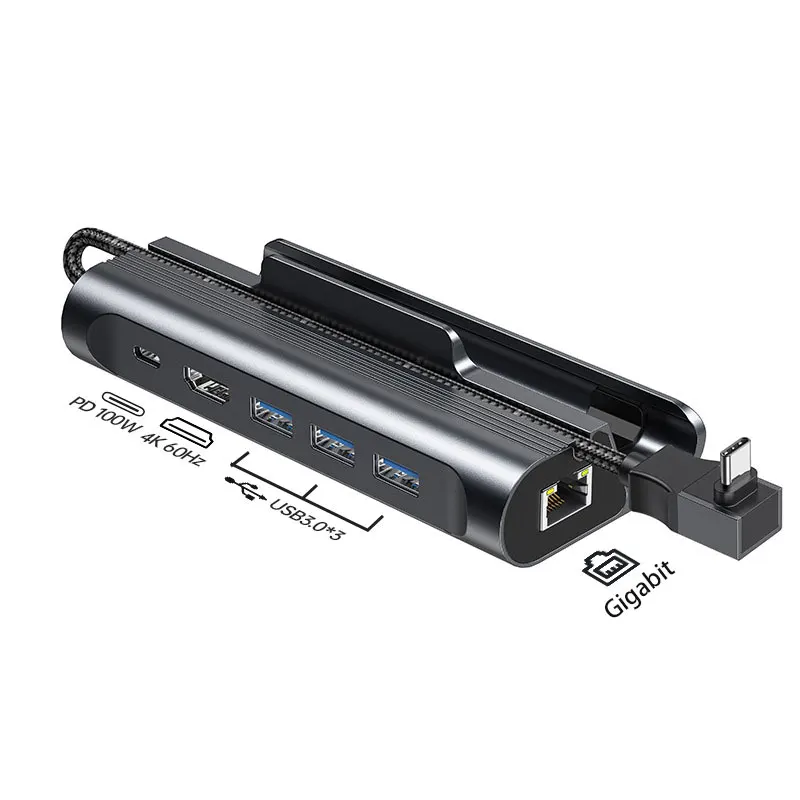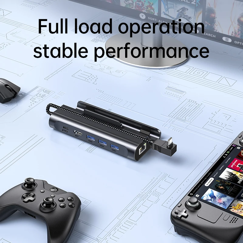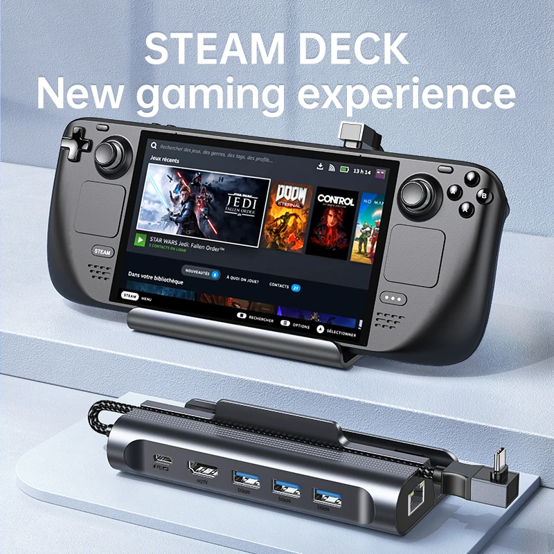 Steam Deck Base de consola de juegos, HUB USB tipo C a 4K, 60Hz, HDMI, RJ45, 1000M, PD, 60W, interruptor de carga rápida, soporte de estación de acoplamiento