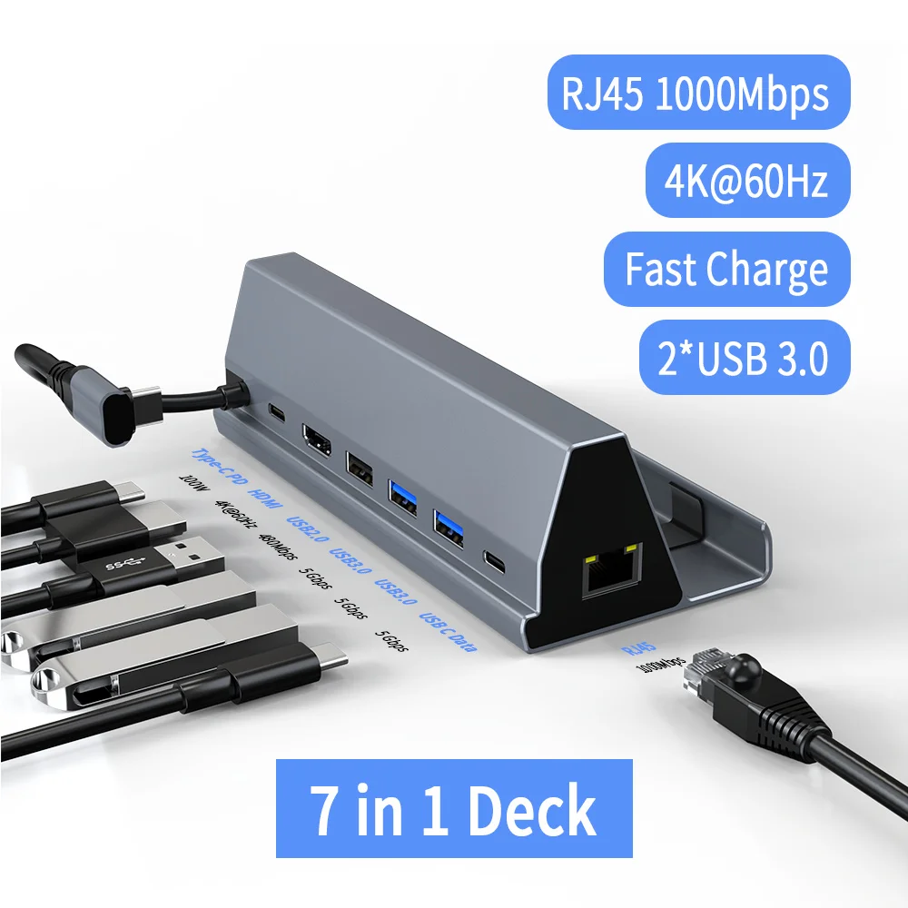 Steam Deck Docking Station 7 en 1 USB HUB 4k60hz Hasta 1000M Expansion Dock Tipo C HUB Switch Game Stand Base Docking Stations