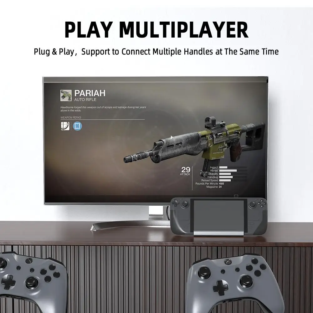 Además de Steam Deck, el Dock también funciona con Switch (al revés), tabletas, teléfonos inteligentes, etc. con puertos
