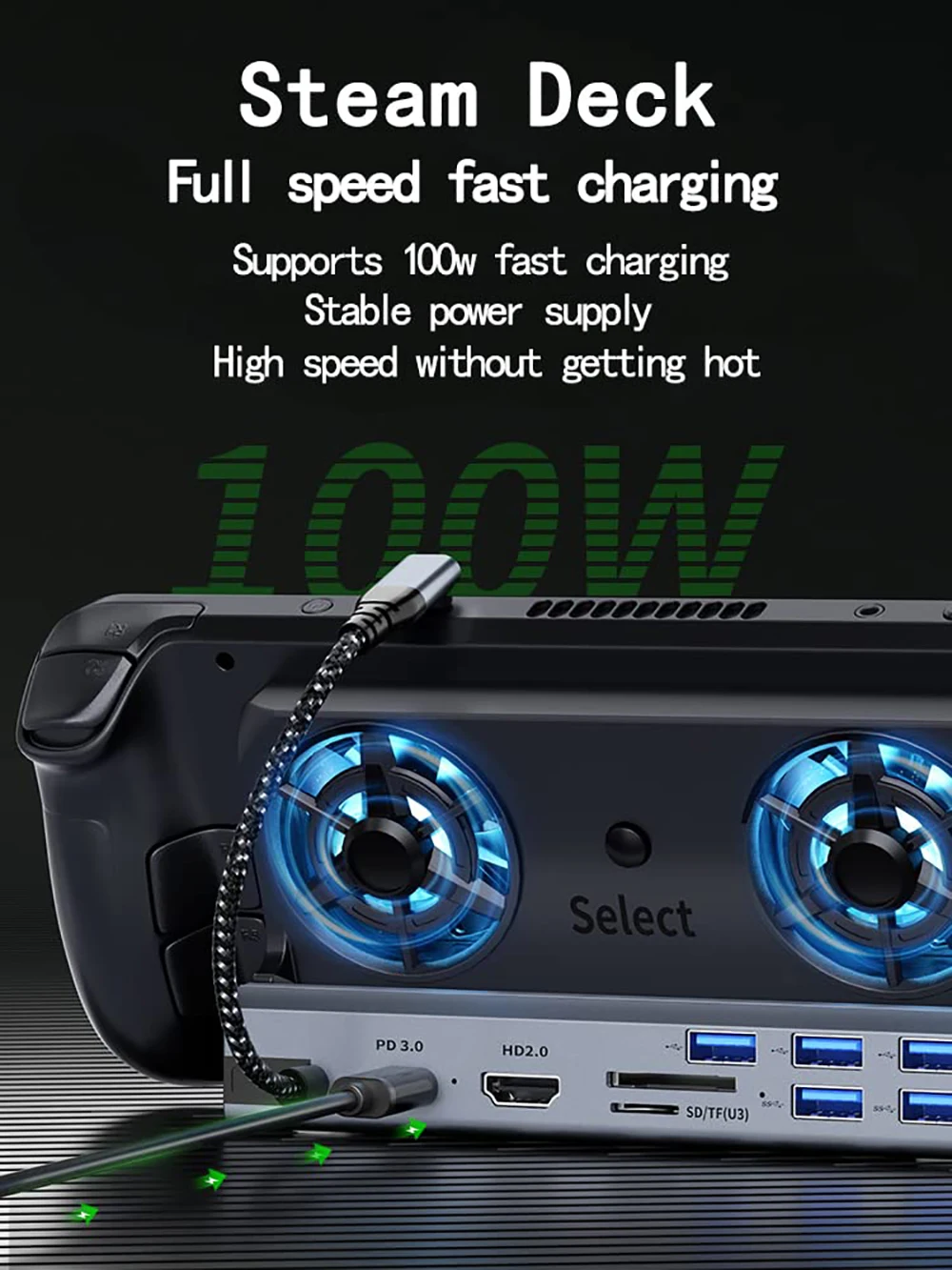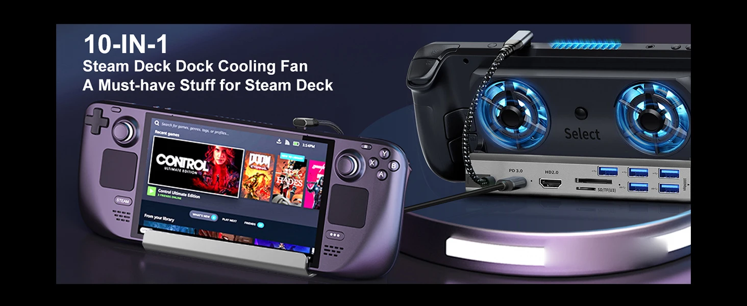 【10-In-1 Docking Station For Steam Deck】GOOJODOQ Steam Deck Dock Is Equipped With HDMI 2.0 4K@60Hz Output, 3 * USB 3.0 Ports, 2 * USB 2.0 Ports, 1 * SD (U3) Slot, 1 * TF (U3) Slot, Gigabit Ethernet Input, 100w USB-C PD Full Speed Charging Port Input, And The Steam Deck Dock With USB-C Port Supports Connection To Devices For Fast Charging. Steam Deck Dock Stand With Fans, Which Make You Explore A New Way To Play.