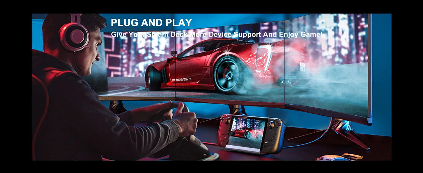 【Fans Cooling And More Ports】GOOJODOQ Steam Deck Stand Is Equipped With Fans To Cool Your Steam Deck. It Is Also Equipped With More Ports, Support For Connecting To Multiplayer Game Controllers, Gamepad, Mouse And Keyboard Etc. The Charging Dock Works Not Only On Steam Decks, But Also On Switch, Tablets, Smartphones And Other Devices With USB-C Ports. The Steam Deck Docking Station Combines The Hub And Stand Together.