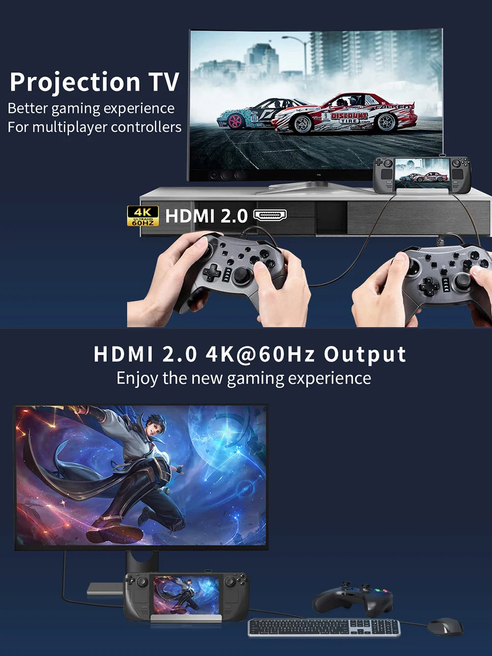 【4K@60Hz Hdmi 2.0 Output】GOOJODOQ Steam Deck Dock Is Equipped With 4K@60Hz HDMI 2.0 Output. When You Connect An External 4K Monitor, It Can Provide You Sharper And Smoother Visual Experience.