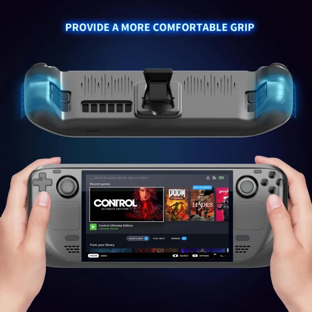 1. Cubierta de cubierta de Steam con soporte: Este Kit de accesorios de cubierta y protector de pantalla es solo para la cubierta de Steam con manos sudorosas, o aquellos que desean un mejor agarre en la cubierta sin agregar demasiado volumen, también hay un soporte en la parte posterior, Que se puede cambiar entre el modo de mano y el modo de escritorio.
