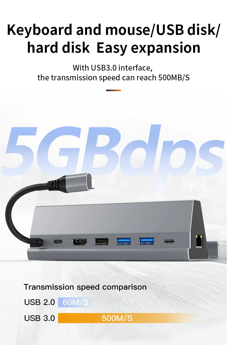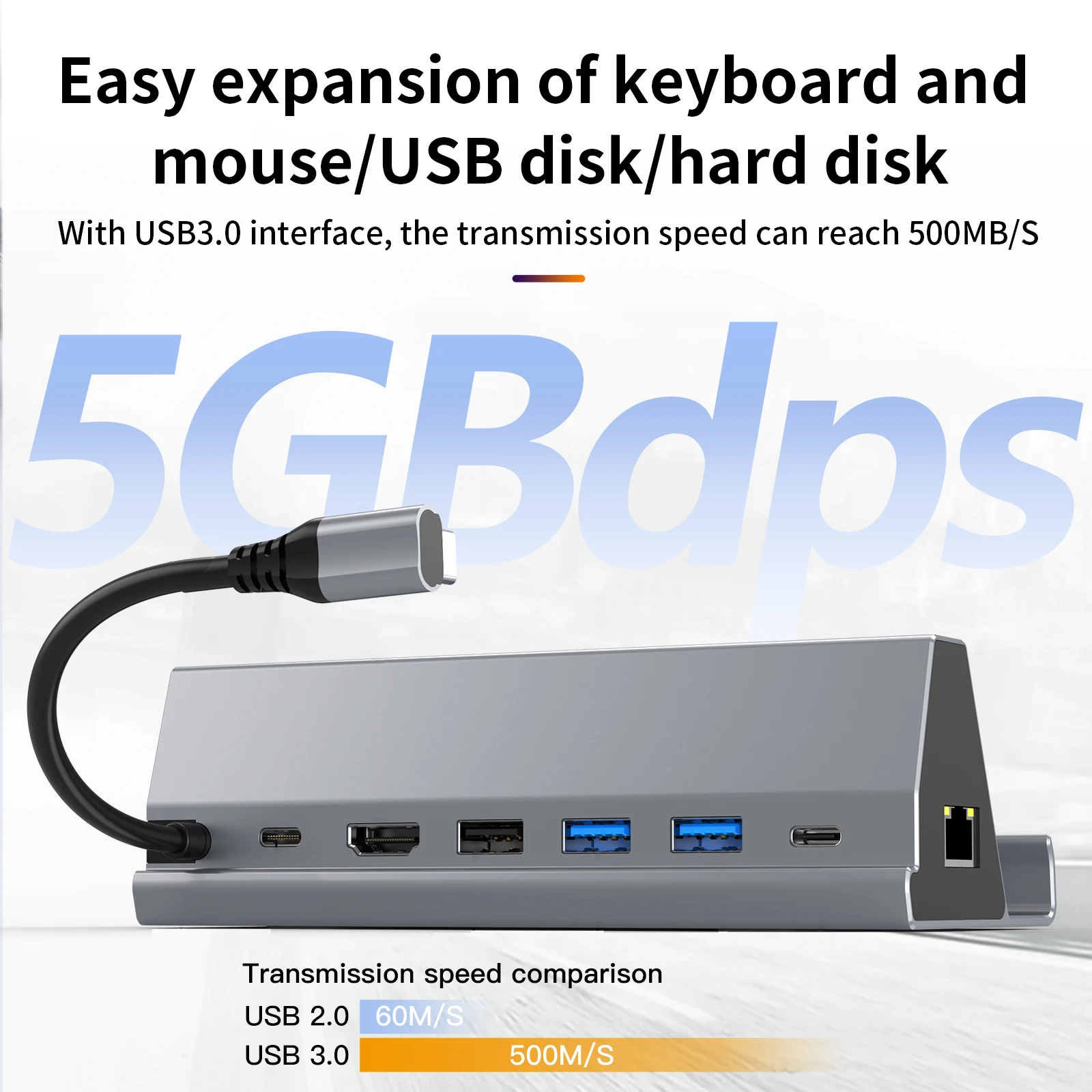 Tipo de interfaz: Tipo c a PD + HDMI + USB3.0 * 2 + USB2.0 + USB-C + RJ45