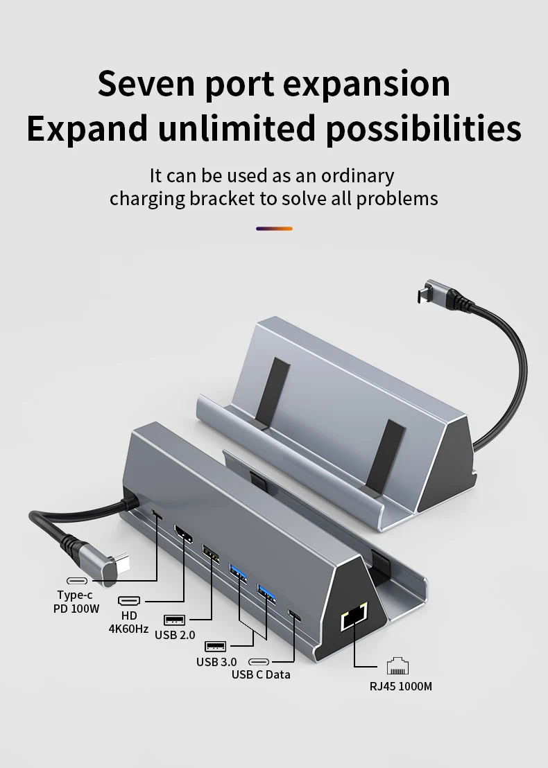 El muelle combina la función de hub y soporte, puede trabajar junto con su funda protectora. No necesita comprar un hub adicional y soporte para su plataforma de vapor, que no solo es más fácil para la proyección del monitor, sino que también mantiene su escritorio limpio y organizado.