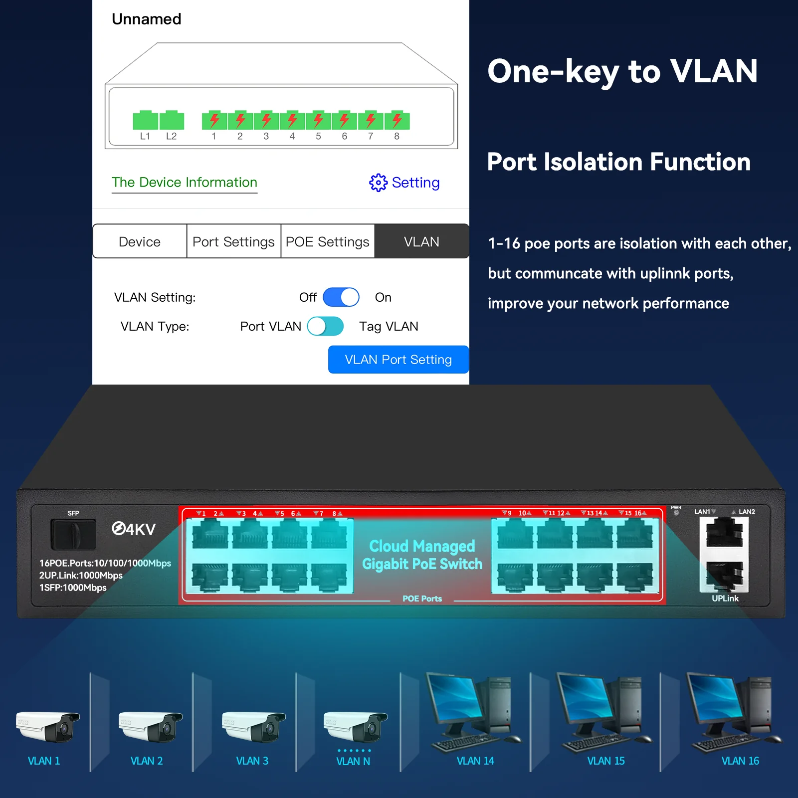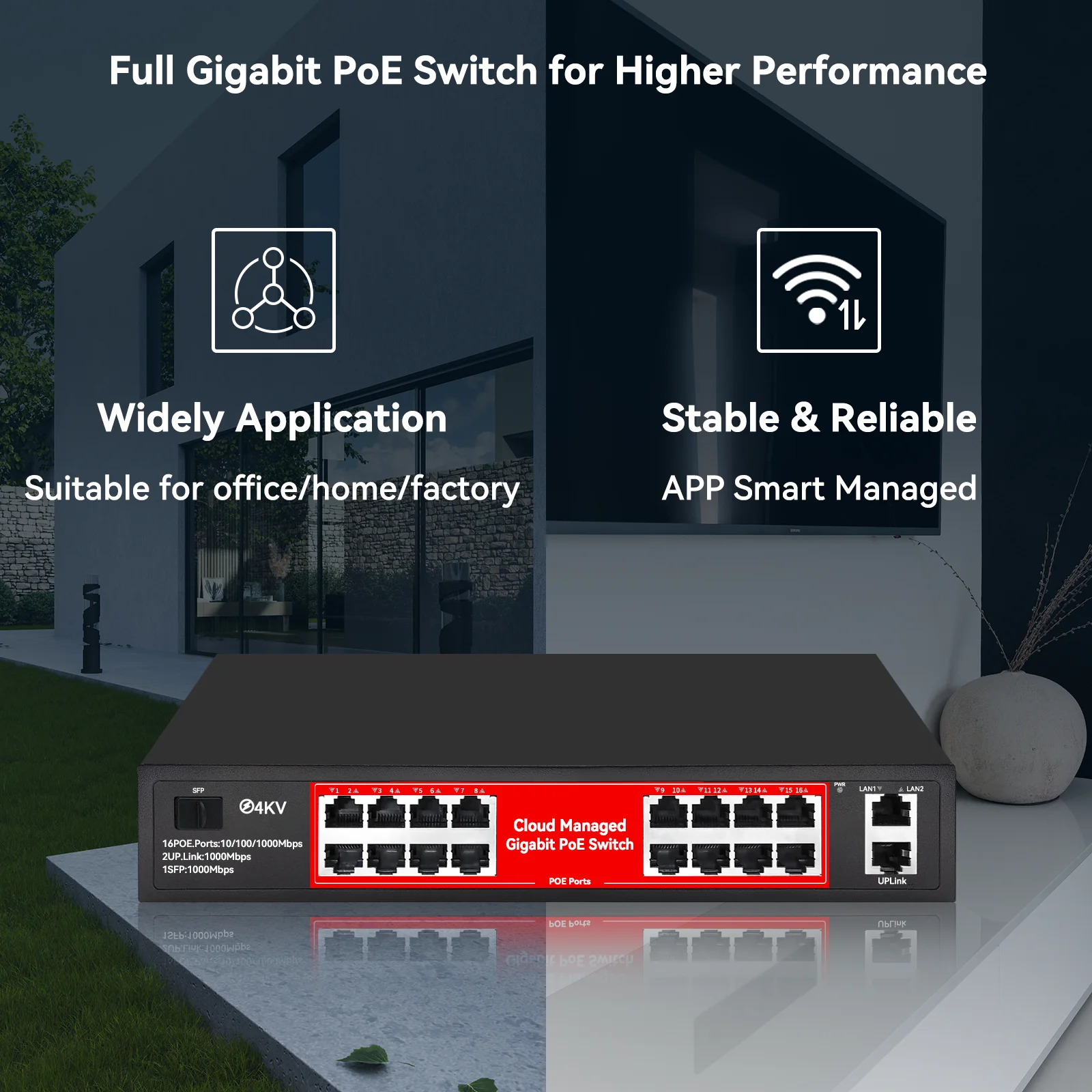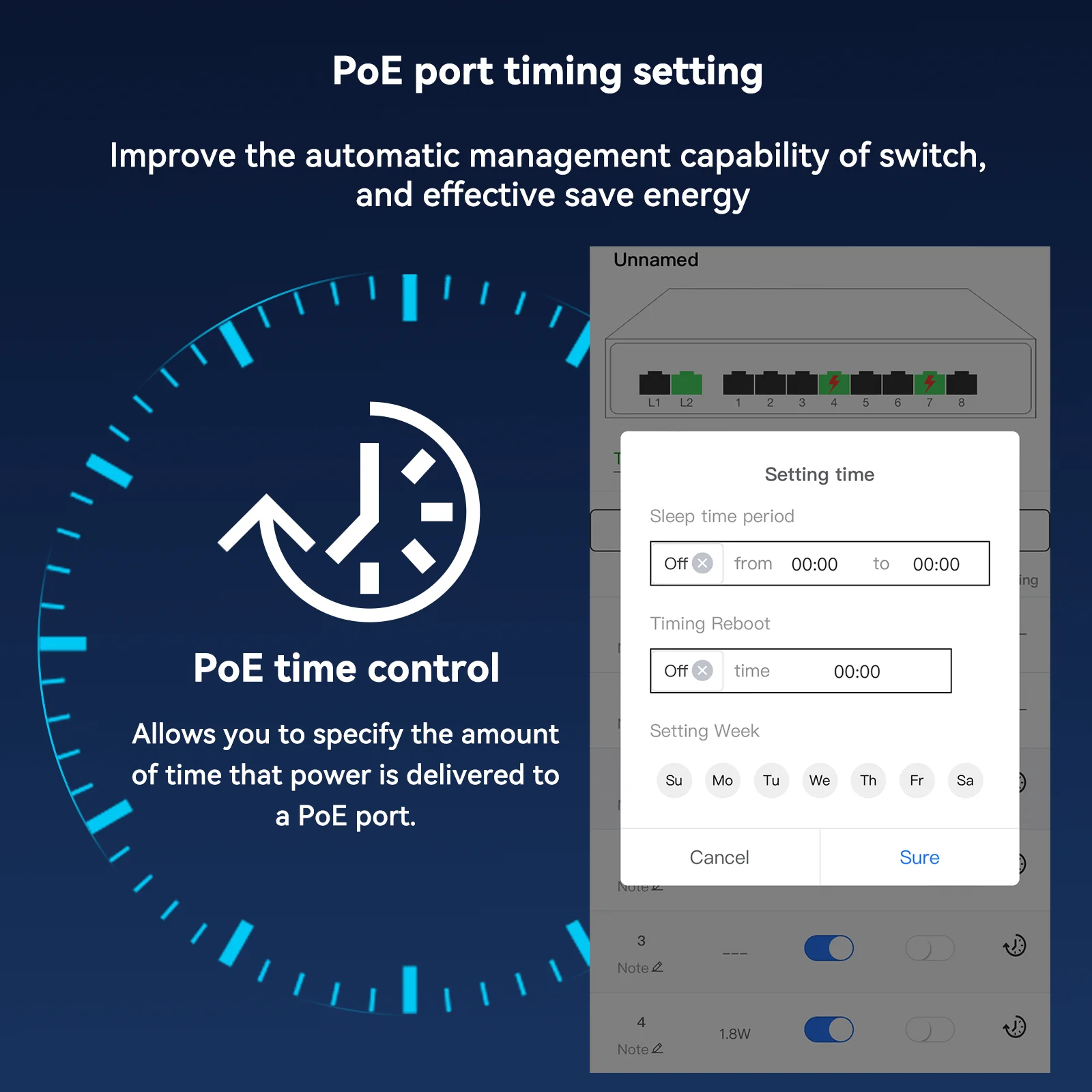 Comprar Steamem Cloud Managed 48V POE Switch Gigabit Dispositivo de red de 8 puertos para cámara IP Punto de acceso inalámbrico