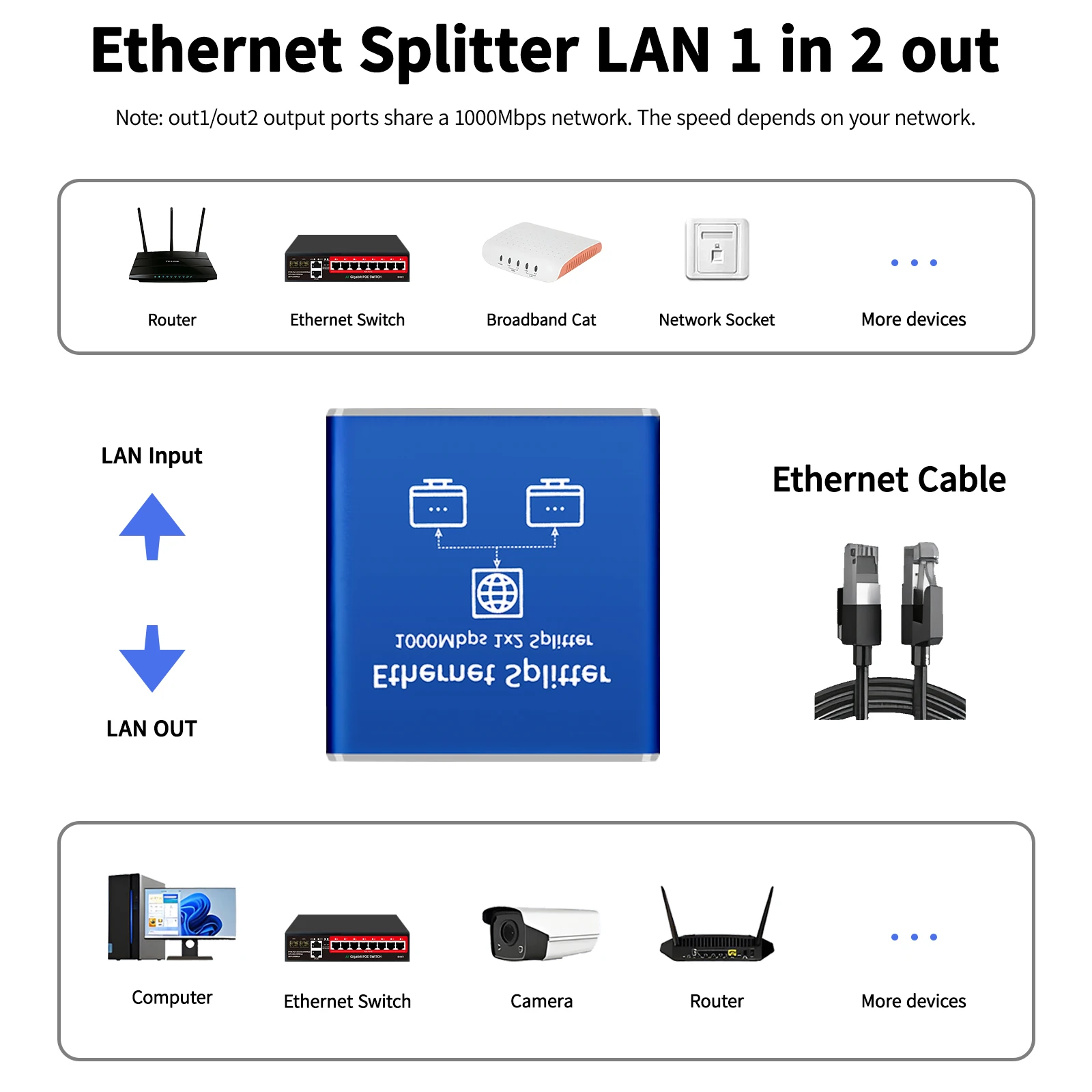 Comprar STEAMEMO-divisor de red de 1 a 2 Gigabit, adaptador Ethernet, extensor de Cable de red de Internet, conector Rj45 para PC, TV Box, enrutador
