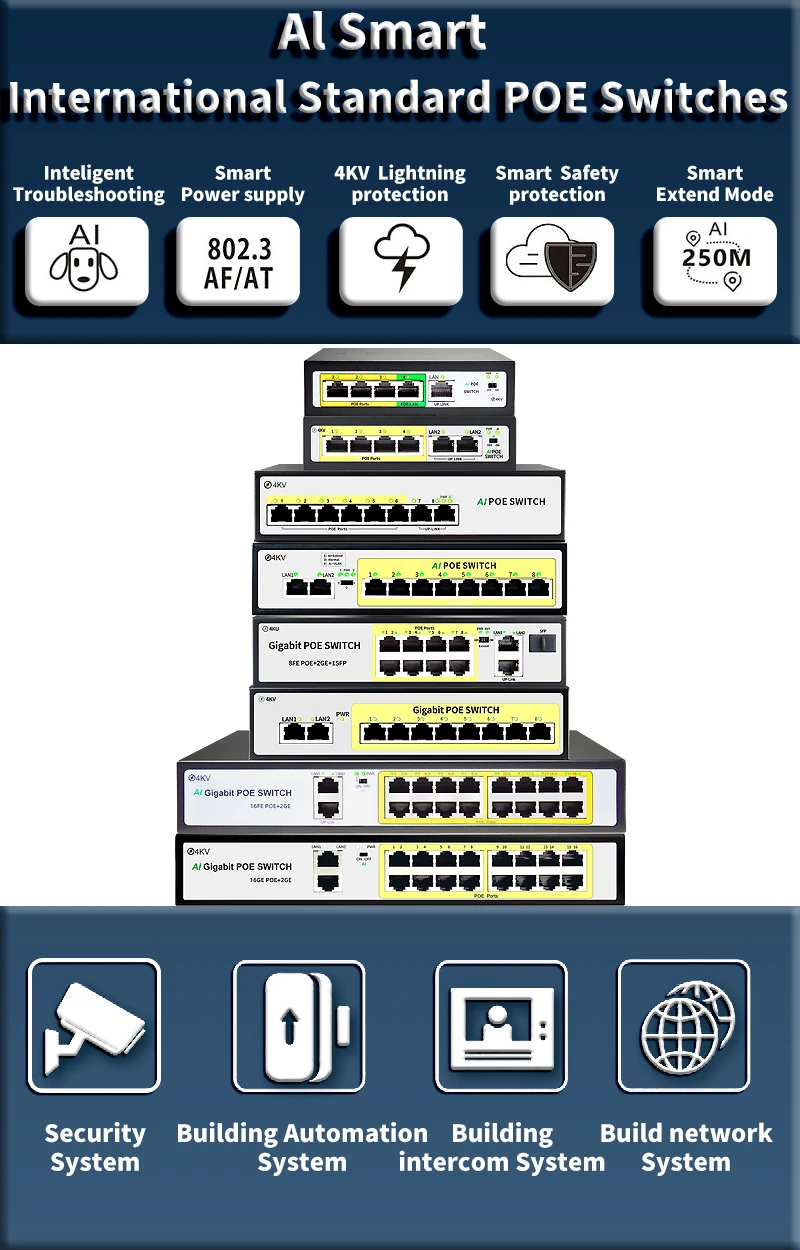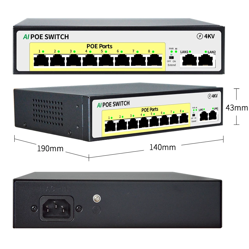 Este es un interruptor AI POE, R & D por STEAMEMO para satisfacer las necesidades de la fuente de alimentación de la red.