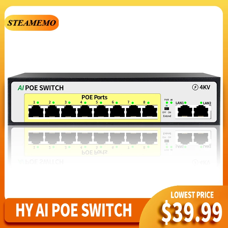 Comprar STEAMEMO HY-interruptor POE de 8 puertos, fuente de alimentación integrada de 100 W, MUplinked 120, adecuado para cámara IP/AP inalámbrica