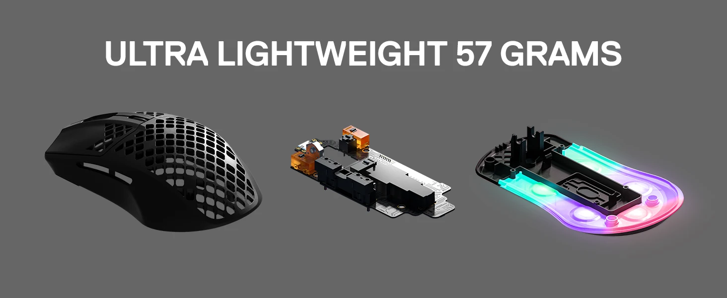 El mouse SteelSeries Aerox 3 tiene un diseño ultraligero de 57 g para un juego sin esfuerzo, un cable de súper malla suave USB-C para reducir la resistencia y una sensación de cable liviana, AquaBarrier resistente al agua IP54 y patines deslizantes de PTFE suaves como la seda para mejorar el control y la velocidad.Estas características se combinan con otras funciones centradas en el rendimiento, como el sensor óptico de juegos TrueMove Core.Cada componente de la construcción externa e interna fue cuidadosamente diseñado para maximizar la durabilidad y la comodidad, haciéndolo perfectamente optimizado para golpes de mouse súper livianos.AEROX 3 Rayo RápidoCada elemento del Aerox 3 está diseñado con precisión desde cero para garantizar los tiempos de reacción más rápidos en los juegos.Cuando los milisegundos cuentan, la velocidad es importante.
