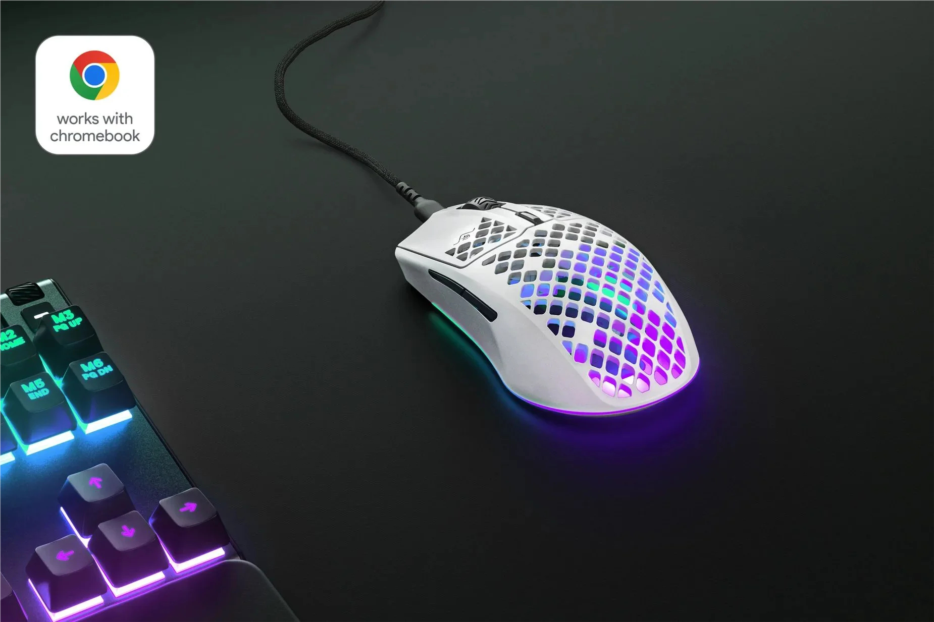 Ratón para juegos Aerox 3, cable de carga/datos de súper malla USB tipo C a USB tipo A, guía de instalación