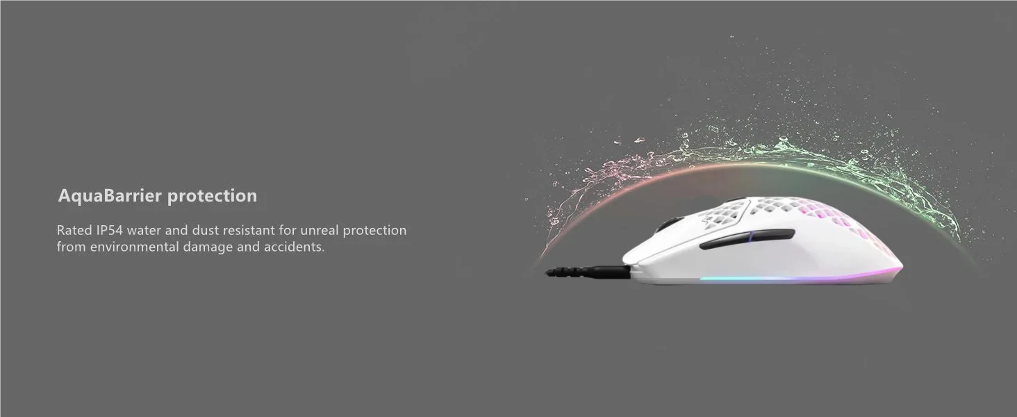 Ratón para juegos súper ligero SteelSeries Aerox 3 8500 CPI TrueMove Core Sensor óptico Diseño ultraligero resistente al agua