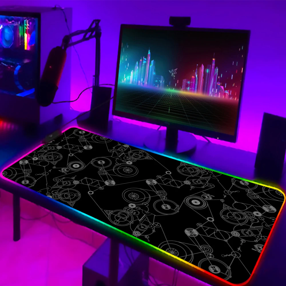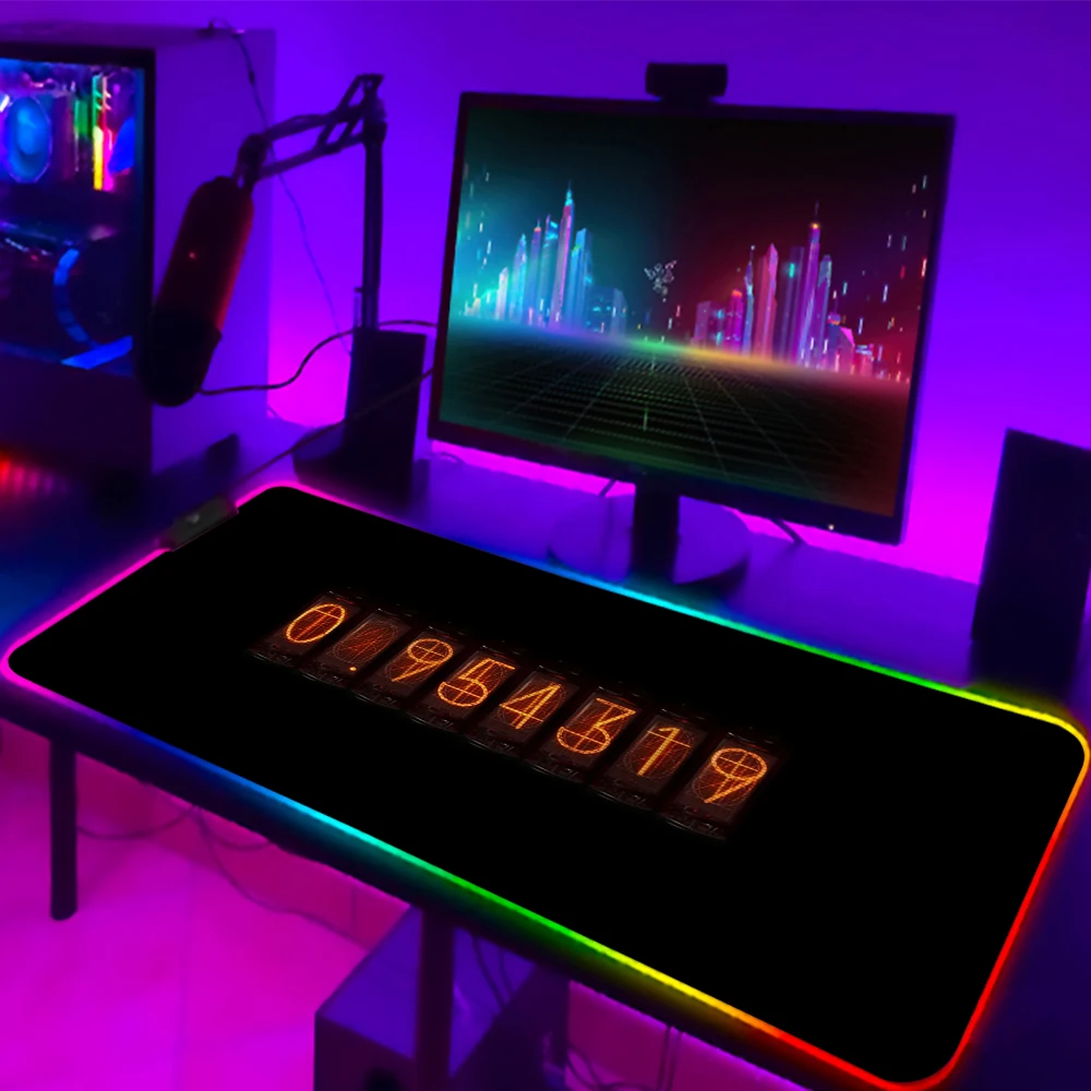 Comprar Steins Gate-alfombrilla de ratón grande con iluminación RGB para Gamer, alfombrilla Led para ordenador con retroiluminación, alfombra para teclado de Pc, alfombrilla de escritorio para CSGO