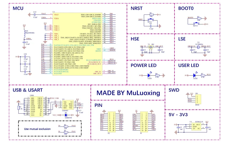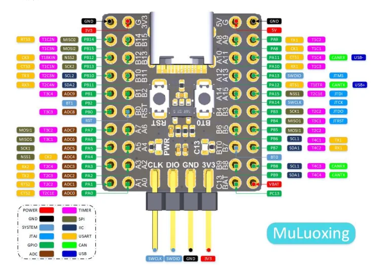 Nota: los chips compatibles de PIN a PIN son aplicables a esta placa base, no se limitan a una sola MCU, por ejemplo, los ejemplos incluyen GD32F103C8T6, CH32F103C8T6, AT32F103C8T6, etc. Por favor, haga todo lo posible cuando las condiciones lo permitan. Utilice MCU de producción nacional para la cantidad.