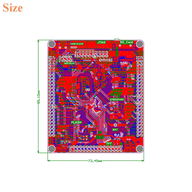Parámetros principales del chip STM32F407VET6:Núcleo: Cortex-M4 RISC de 32 bits;Características: instrucciones DSP de un solo cicloFrecuencia de funcionamiento: 168MHz210DMIPS / 1025 DMIPS / MHZVoltaje de funcionamiento: 1,8,6 VPaquete: LQFP144Recursos de almacenamiento: 512 kB Flash/192 + 4 kb SRAMRecursos:3 X SPI, 3 X USART2 X UART2 X I2S, 3 X I2C1 X FSMC, 1 X SDIO, 2 X CAN1 controlador USB 2.0 FS/HS (con DMA dedicado)1 X USB HS ULPI (para USB externo HS PHY)1 Ethernet 10/100 para MAC1 interfaz de cámara paralela de 8 a 12 bits3 X AD (12 Wei, 1us, compartir 24), 2 X DA (12 bits)