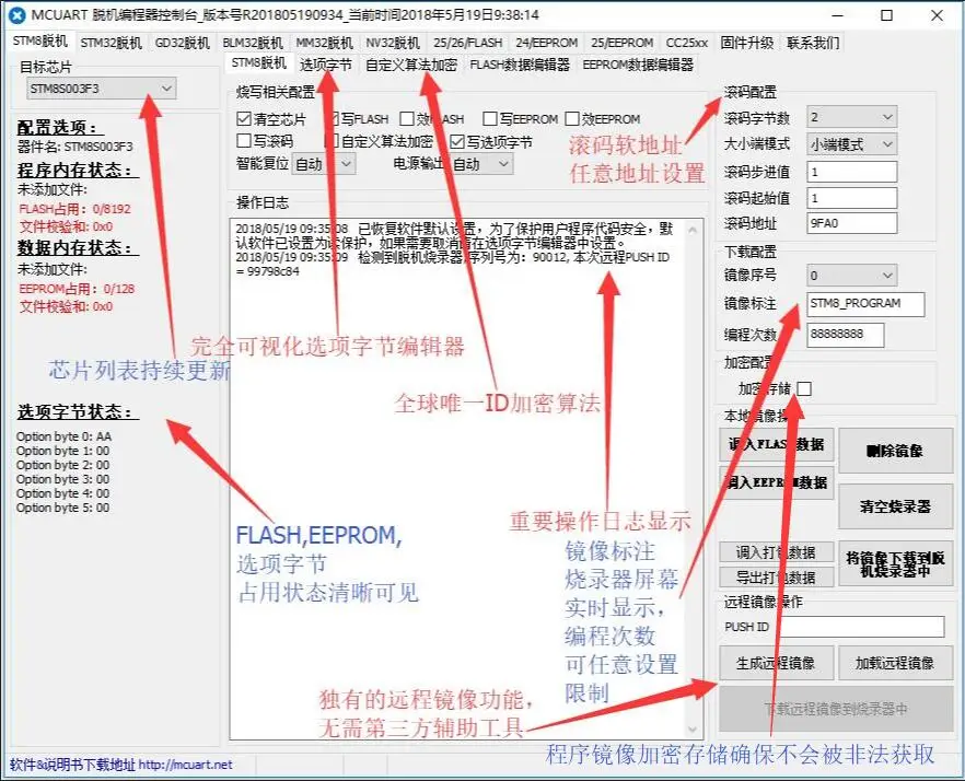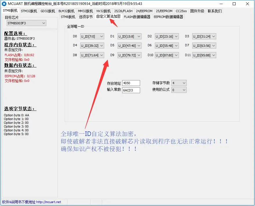 Programador sin conexión STM 8, software de ordenador superior e instrucciones, Dirección de descarga:http://www.mcuart.net/download