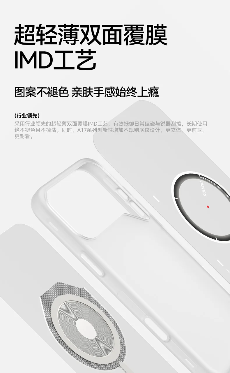 Utiliza tecnología IMD de película de doble cara para evitar la decoloración del patrón y garantizar una estética duradera.