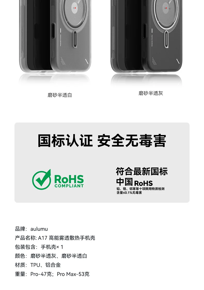Disipa el calor de manera eficiente, reduciendo la temperatura del teléfono en 2-3°C en comparación con los casos tradicionales.